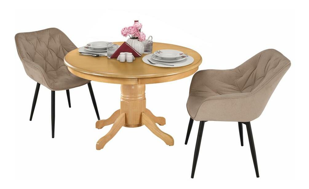 Masa de sufragerie Tayna este un model compact, ideal pentru 2 persoane, realizată din lemn masiv de stejar deschis și drevo, care aduce căldură și un aer natural oricărui spațiu. Această masă rotundă îmbină robustețea cu un design clasic, fiind potrivită atât pentru sufragerii moderne, cât și pentru interioare în stil rustic sau tradițional.