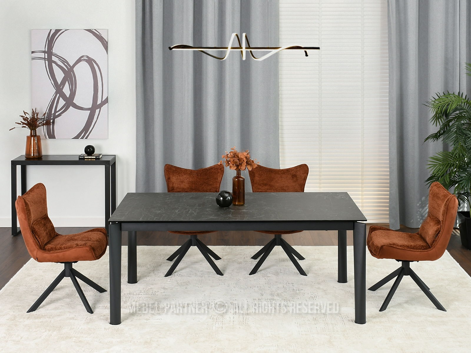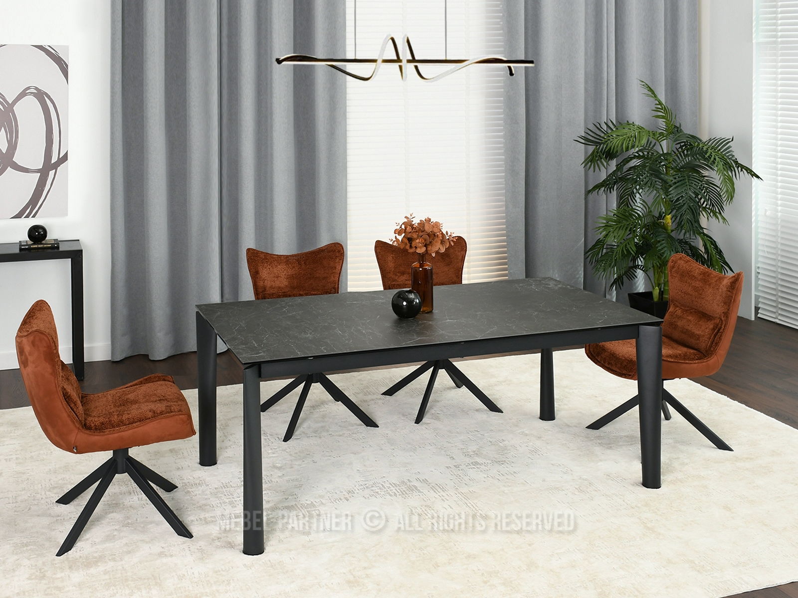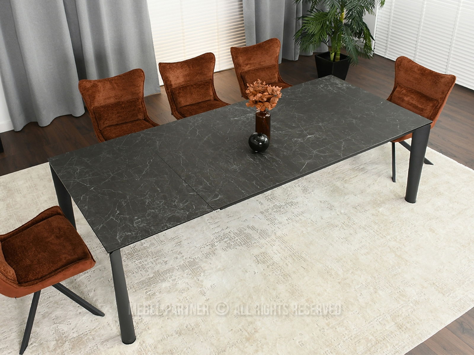 Masă de sufragerie Tornado (marmură neagră + negru)