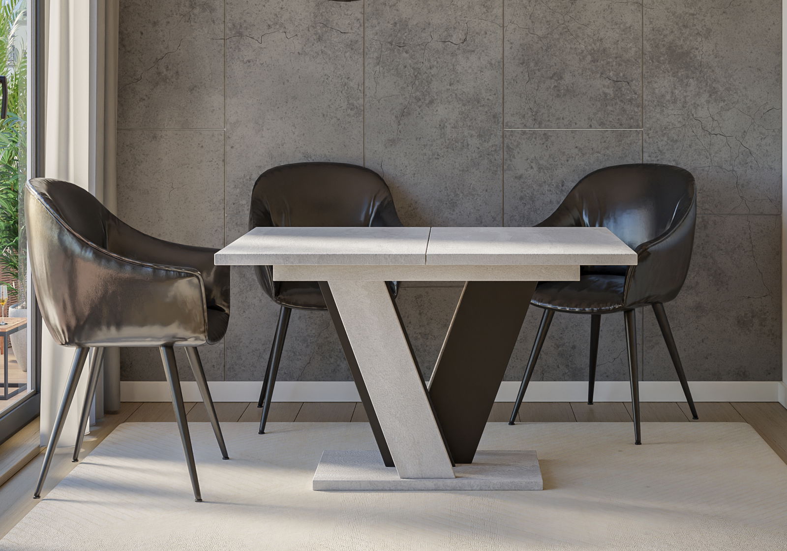 Masă de sufragerie Venag (gri deschis + Negru) (pentru 4 până la 6 persoane)