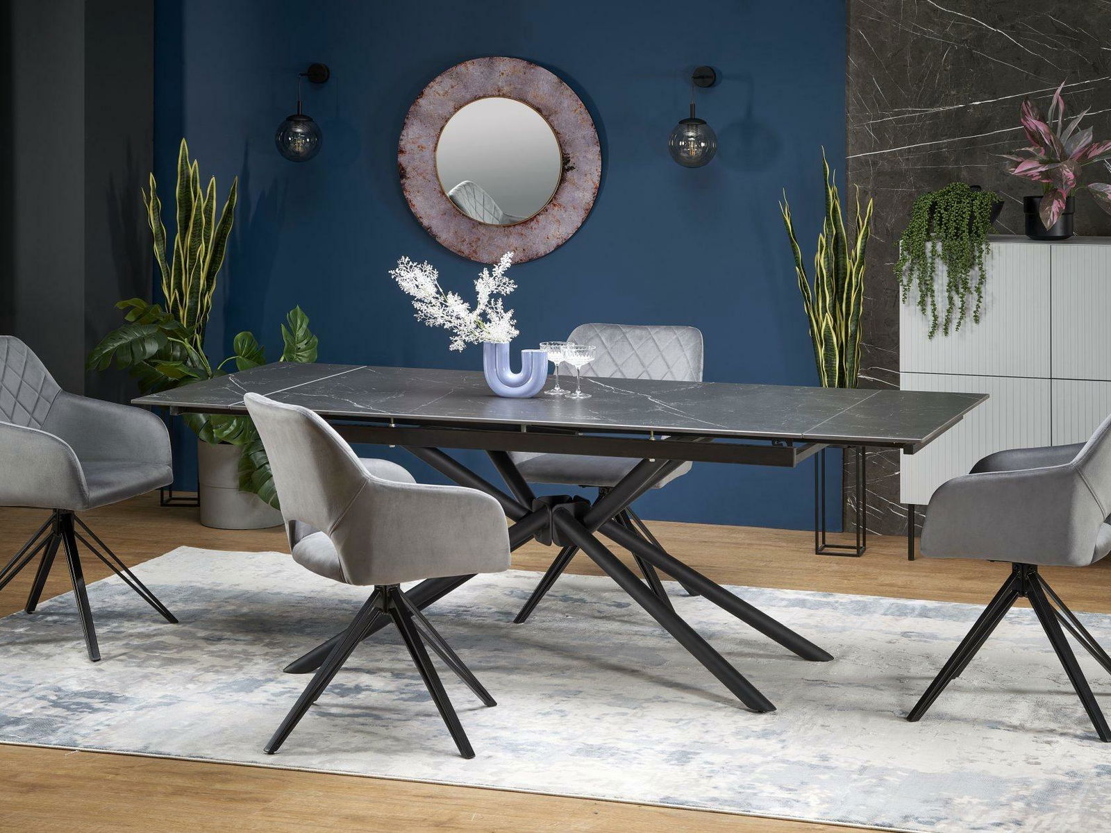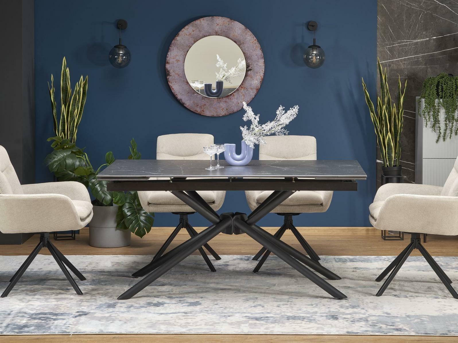 Masă de sufragerie Victory (marmură negru + negru) (pentru 6 și mai multe persoane)