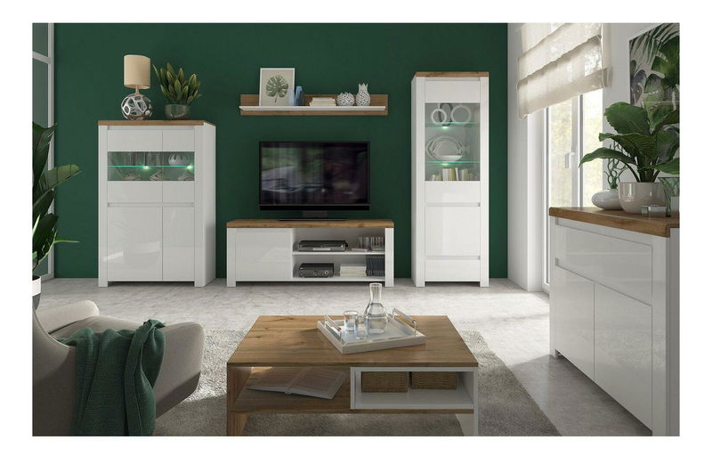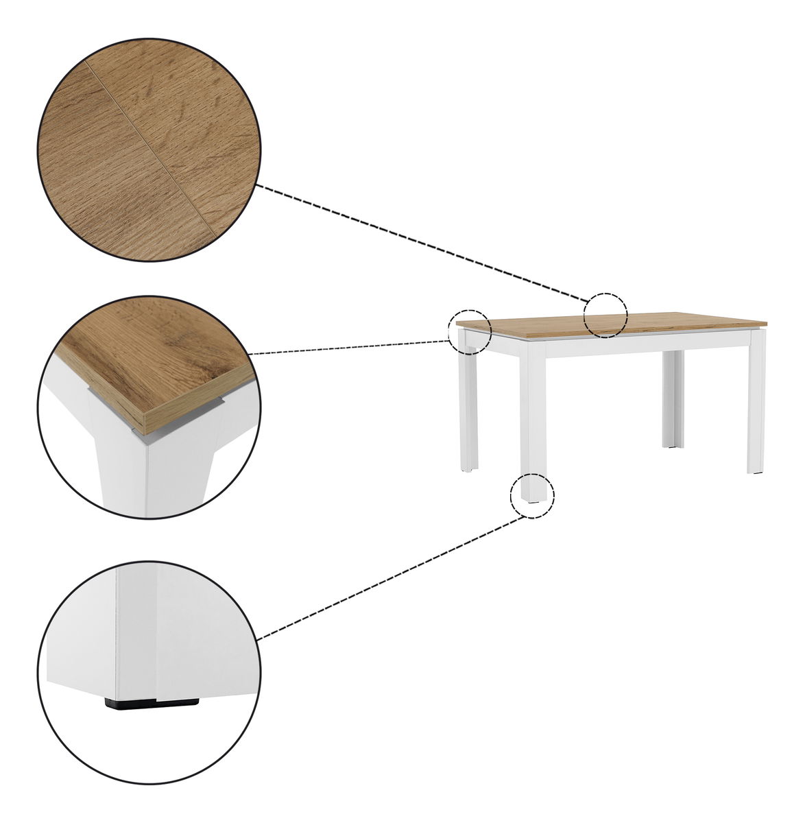 Masă de sufragerie Vilgi (pentru 4 până la 6 persoane) (alb + stejar wotan)