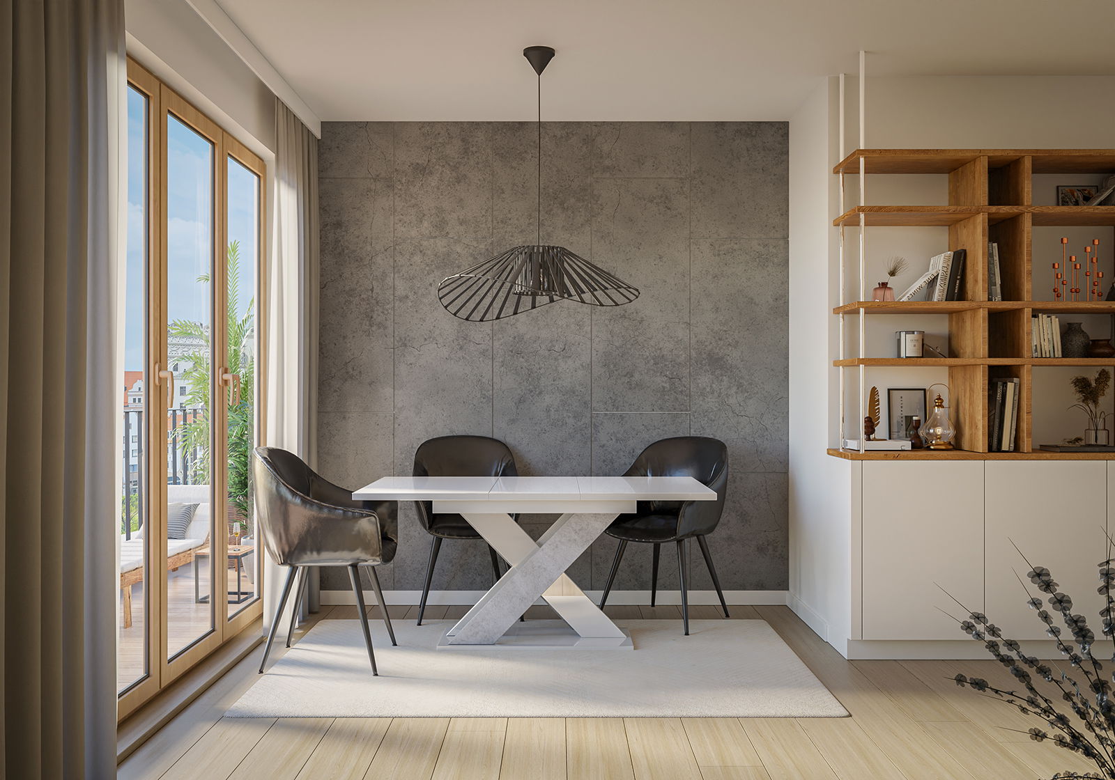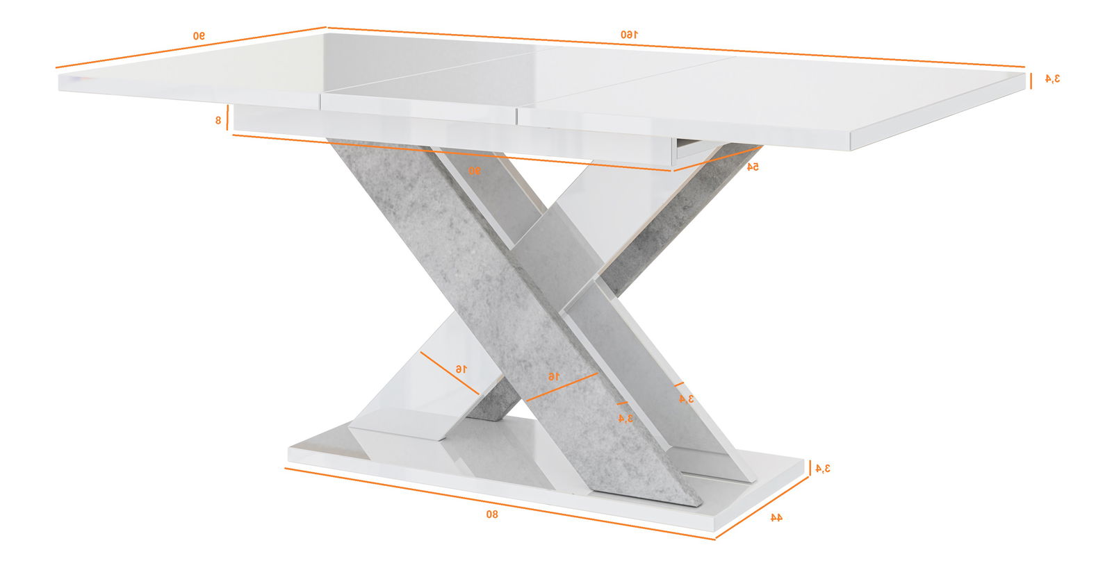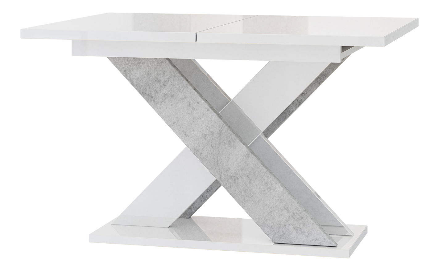 Masă de sufragerie Xalin (alb lucios + piatră) (pentru 4 până la 6 persoane)
