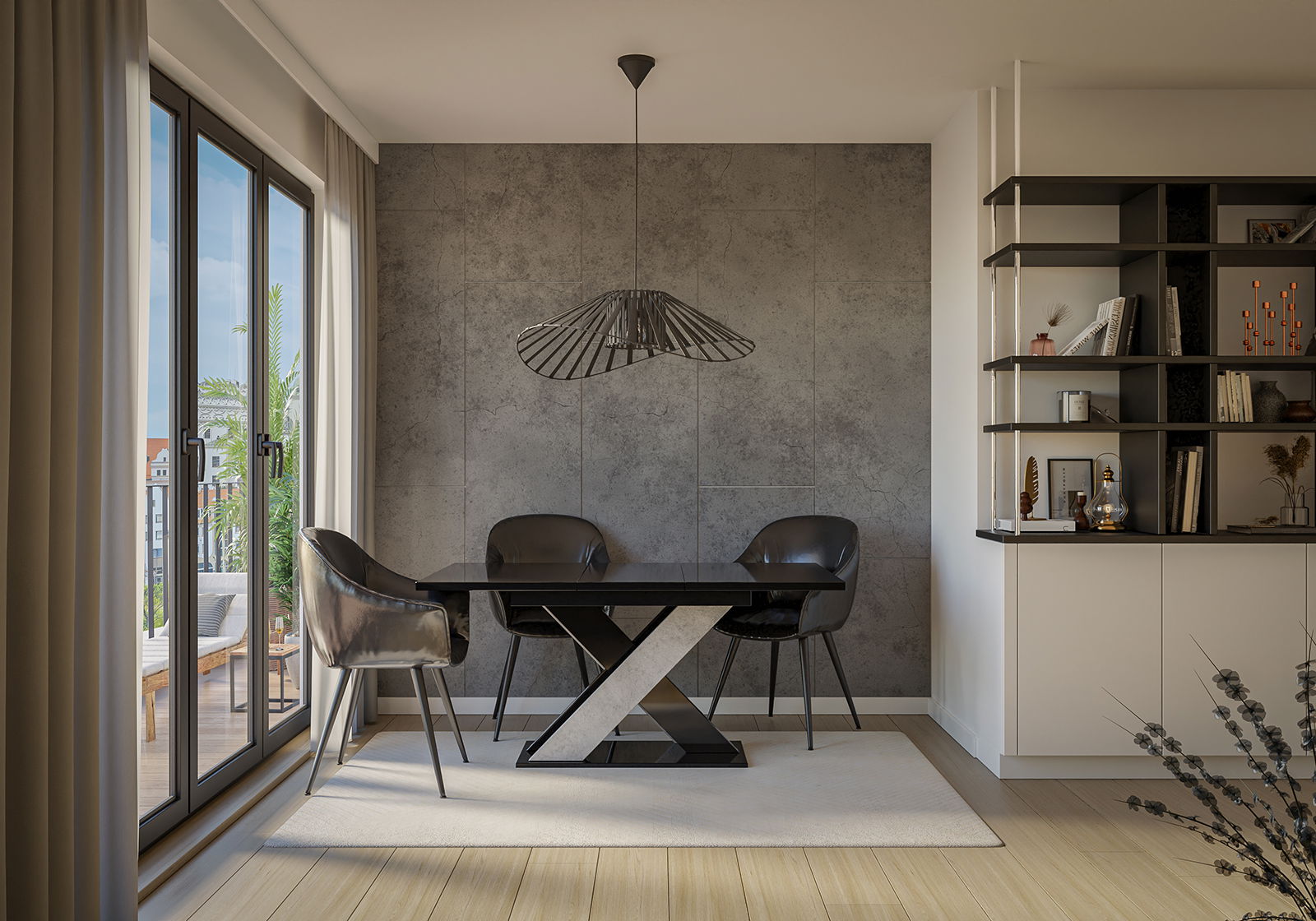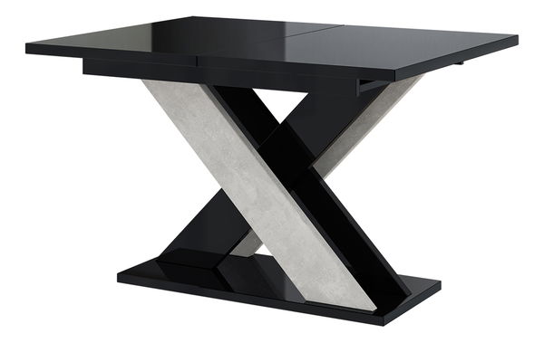 Masă de sufragerie Xalin (negru lucios + piatră) (pentru 4 până la 6 persoane)