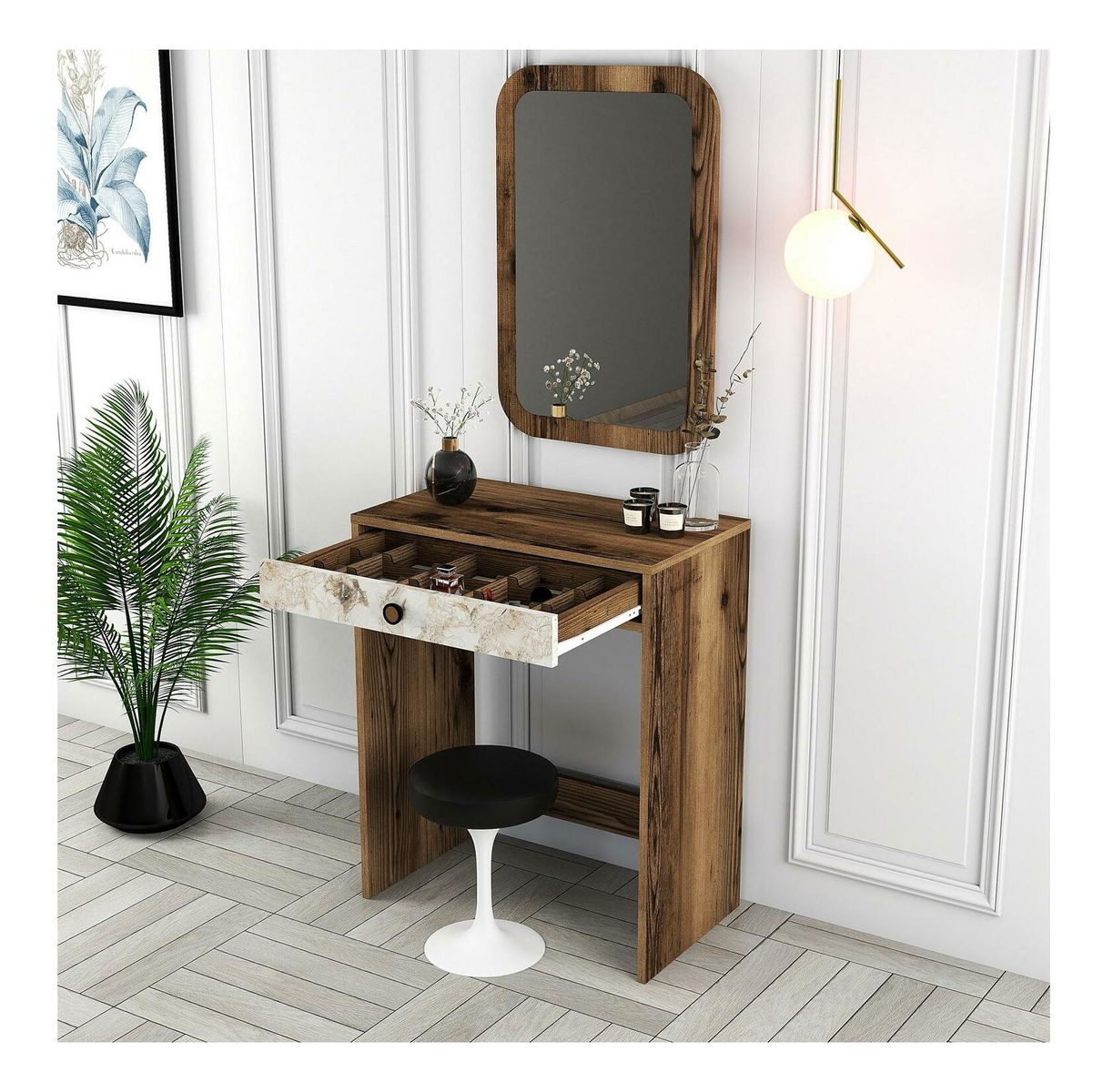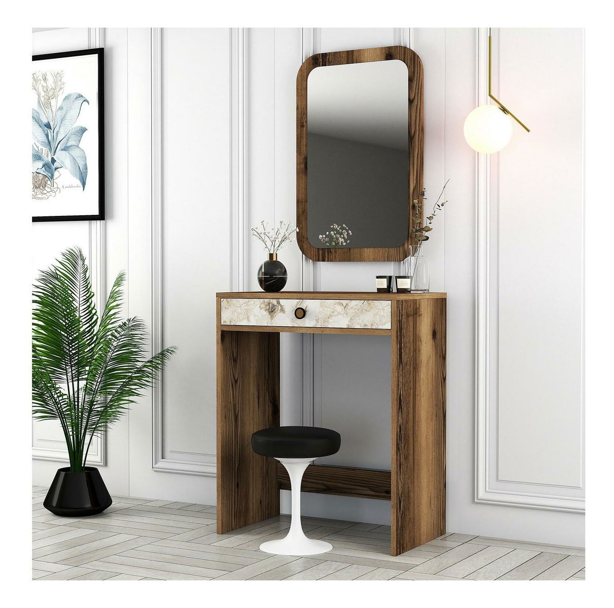 Masă de toaletă Logan (Marmură albă + Nuc)