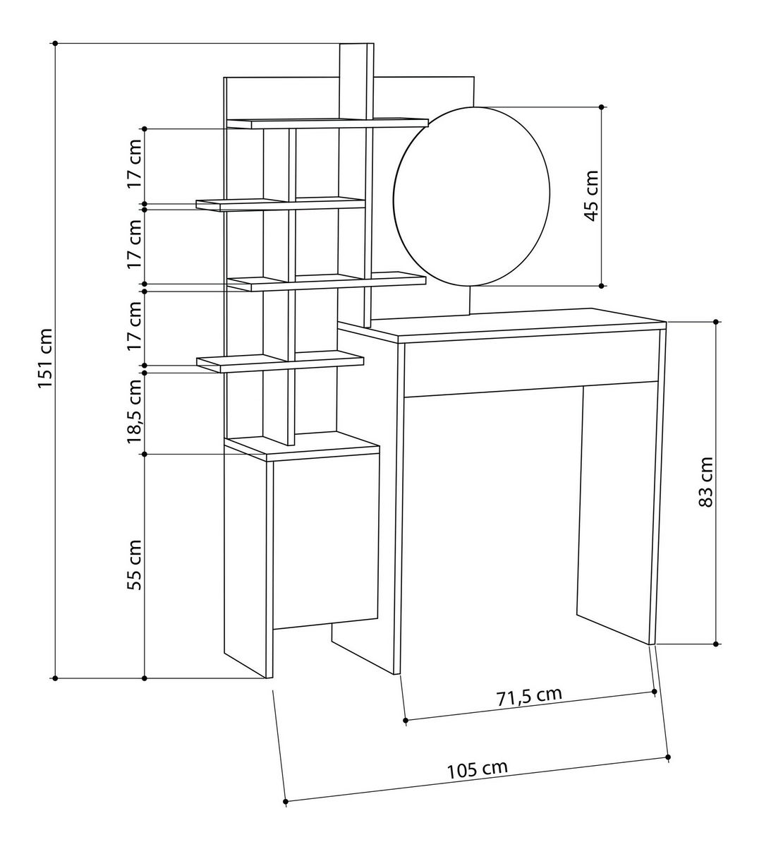 dimensiuni măsuță make-up: lățime: 71,5 cm înălțime: 83 cm adâncime: 35 cm