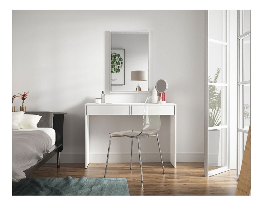 Măsuță de toaletă pe versiune color atractivă, cu sufiecient spațiu de depozitare.