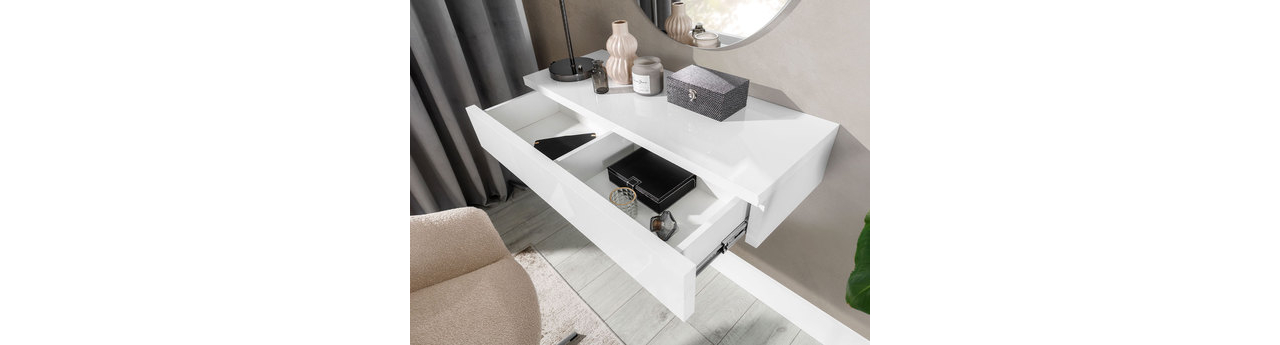 Masă de toaletă Wepanda (Alb + lucios Alb)