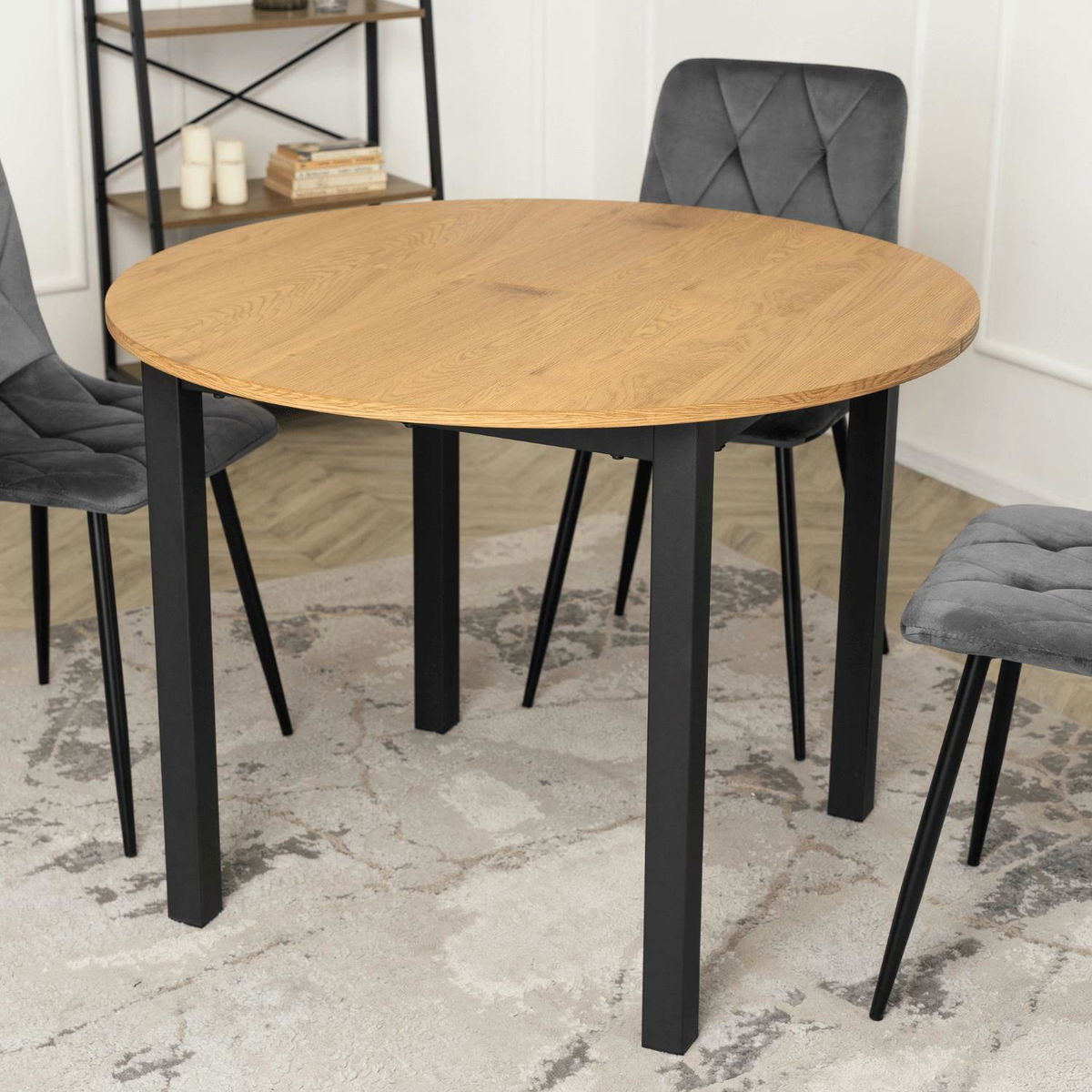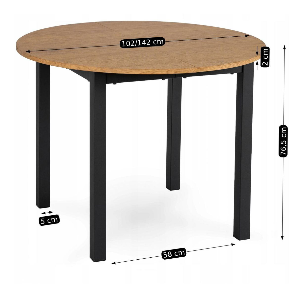 Masă extensibilă de sufragerie Klebanov (stejar + negru) (pentru 4-6 persoane) *resigilat