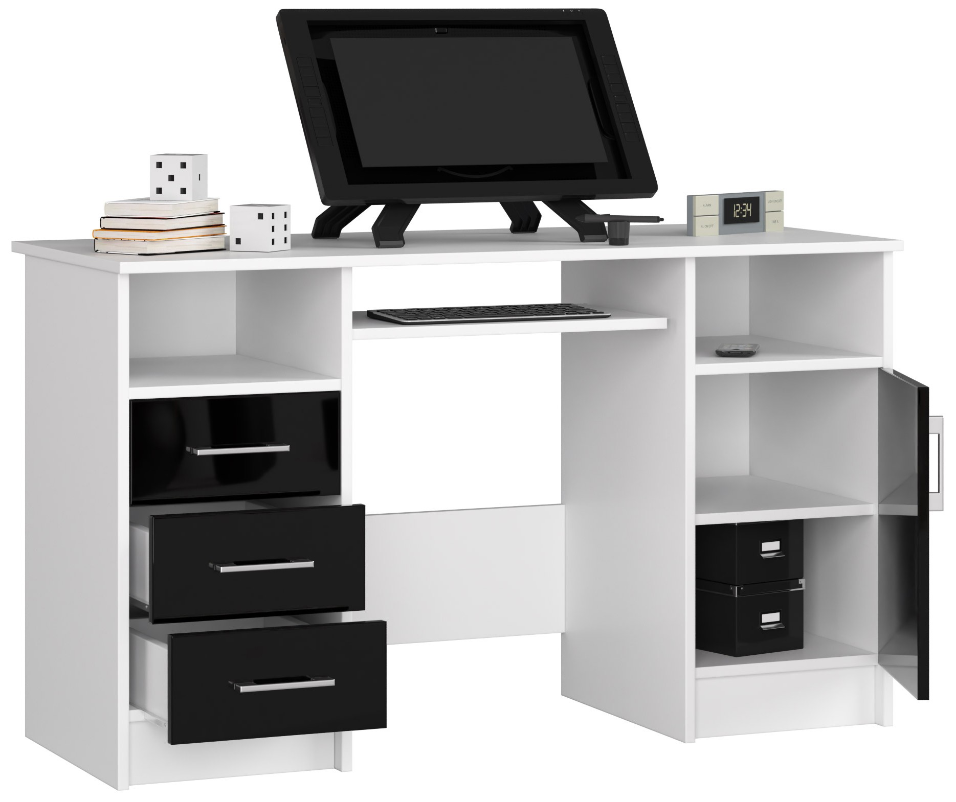 Masă PC Aziza (Alb + negru lucios)