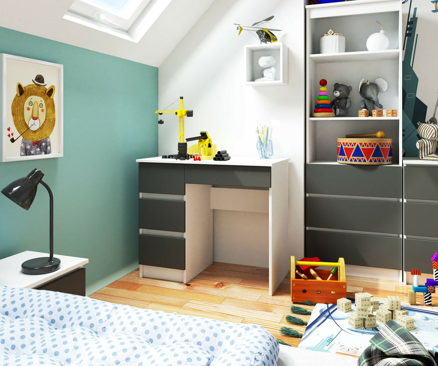 Masă PC Benicio II (alb + gri) (S) *resigilat