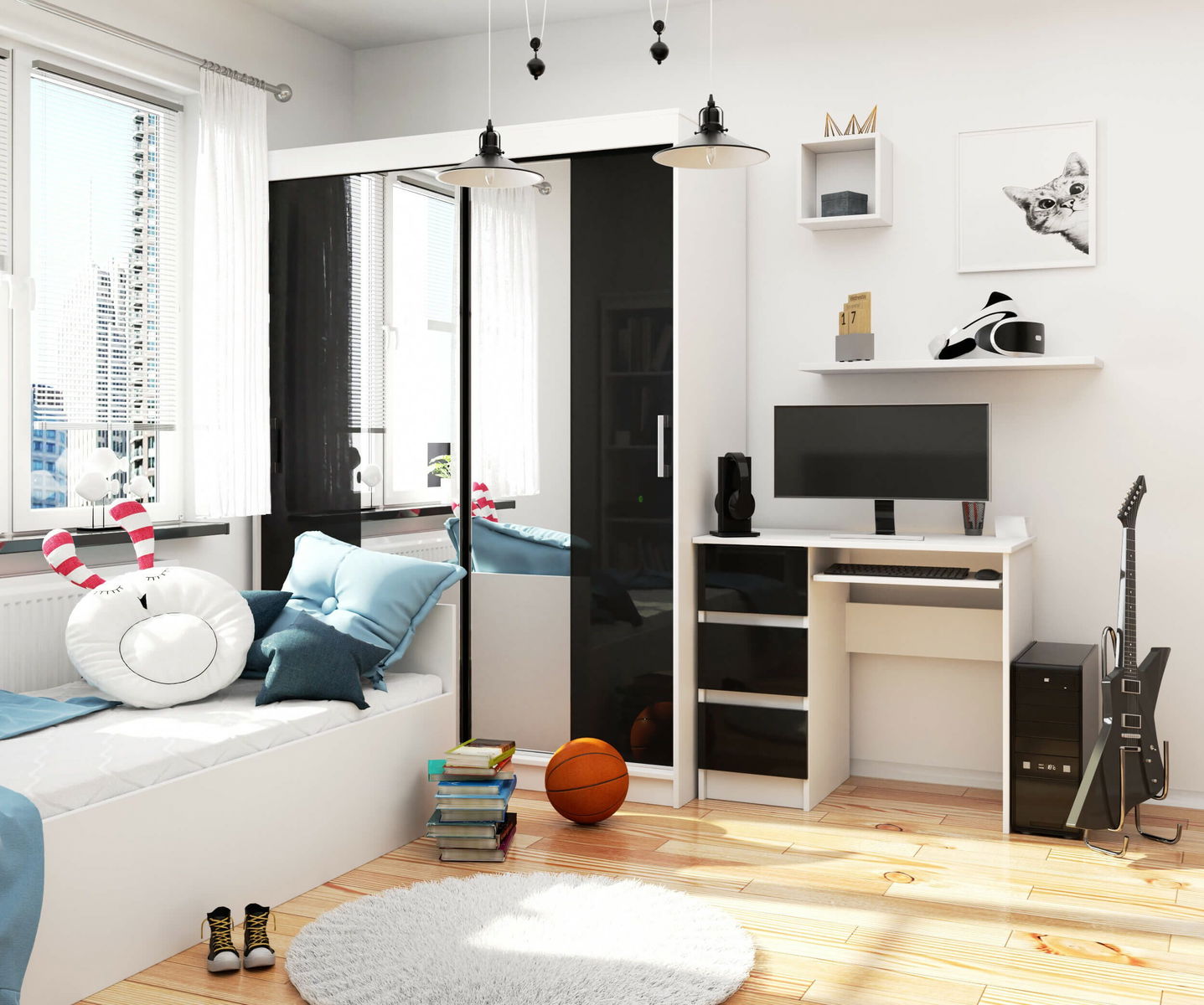Masă PC Benicio (Negru lucios) (S)