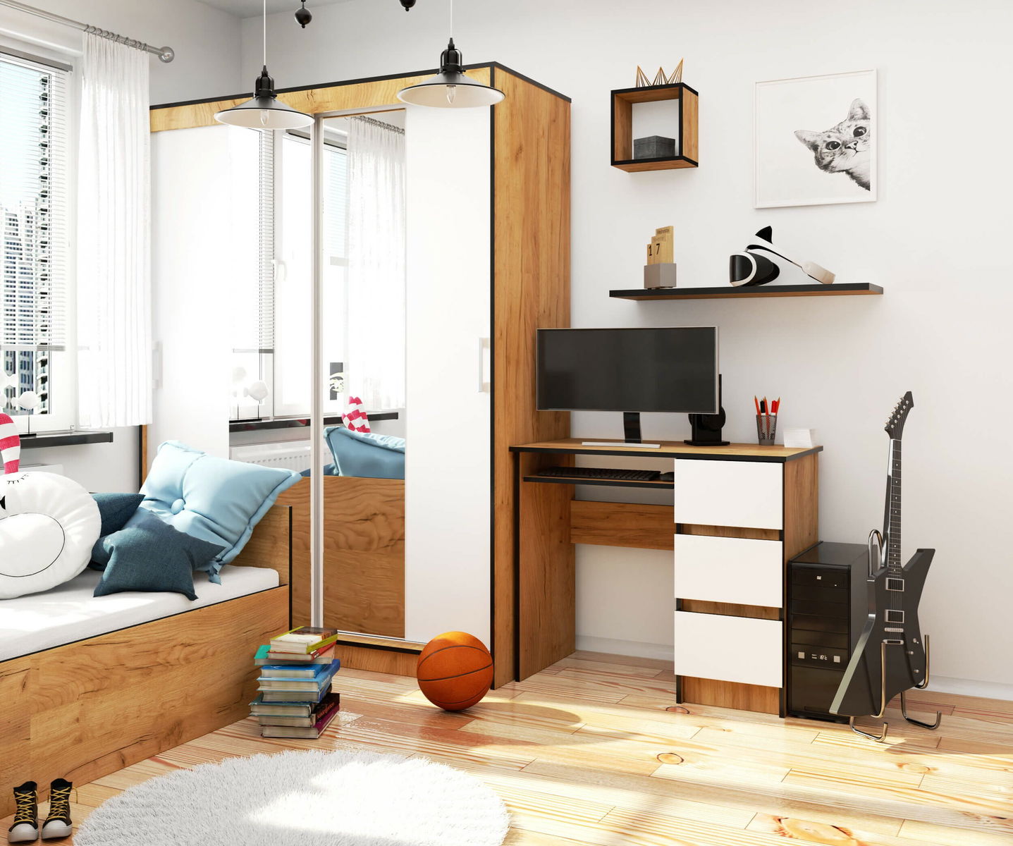 Masă PC Benicio (Stejar craft + Alb) (D)