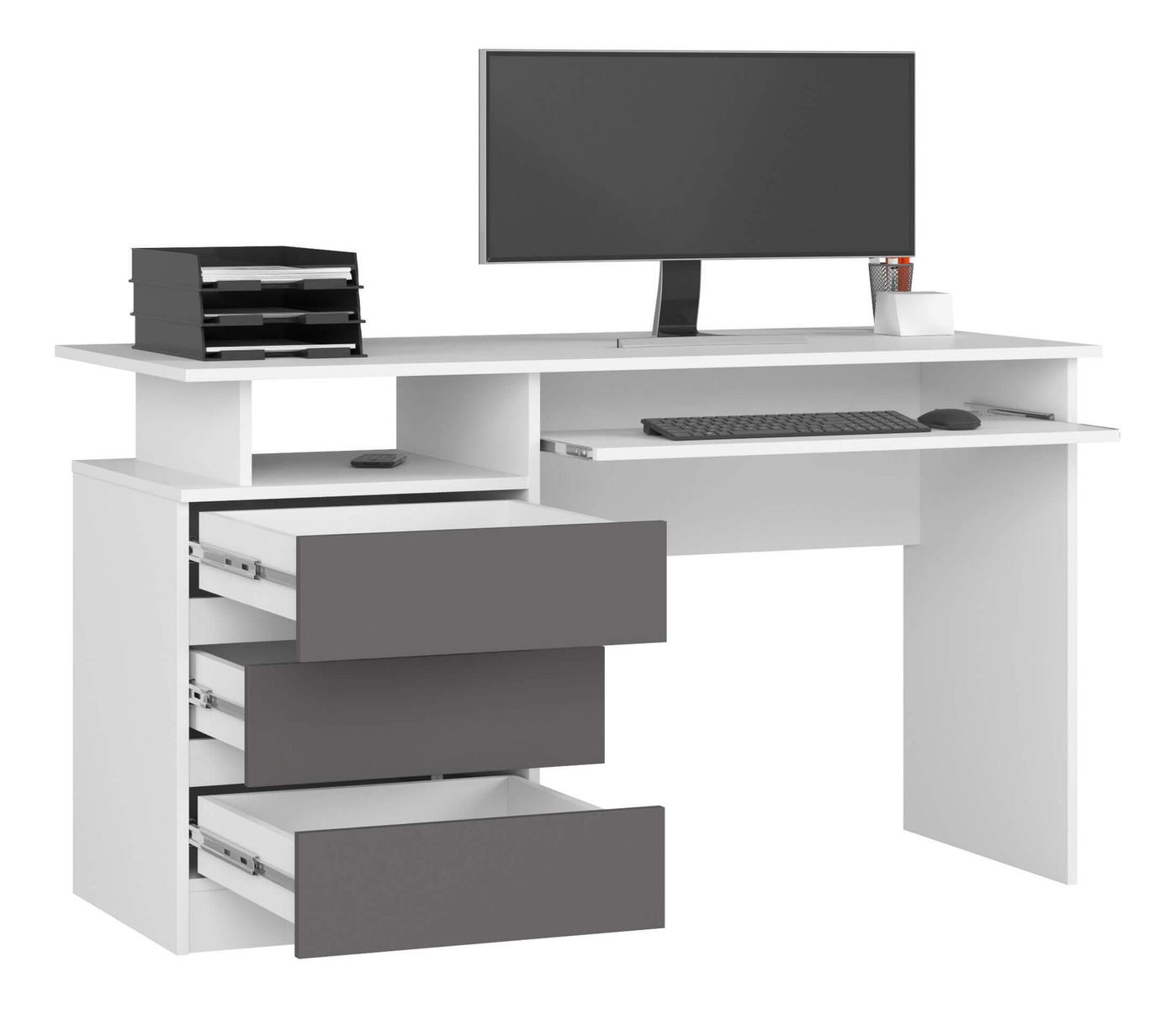 Masă PC Bronte (alb + gri)