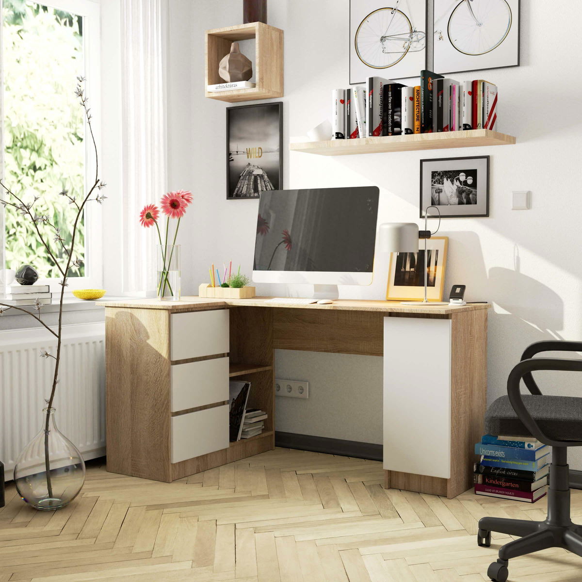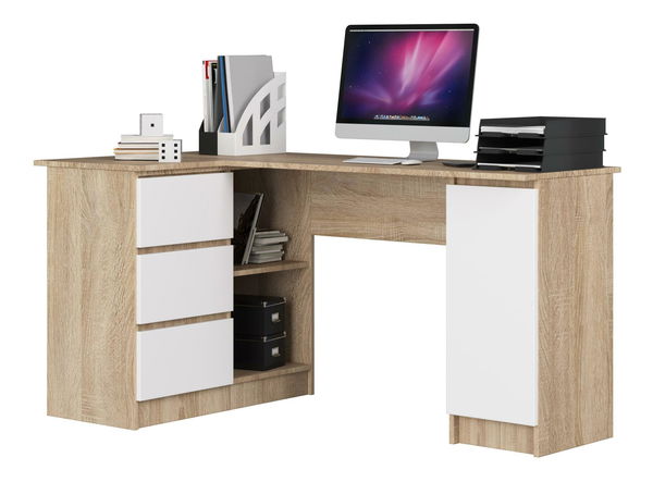 Masă PC de colț Bevin (stejar sonoma + alb) (S)