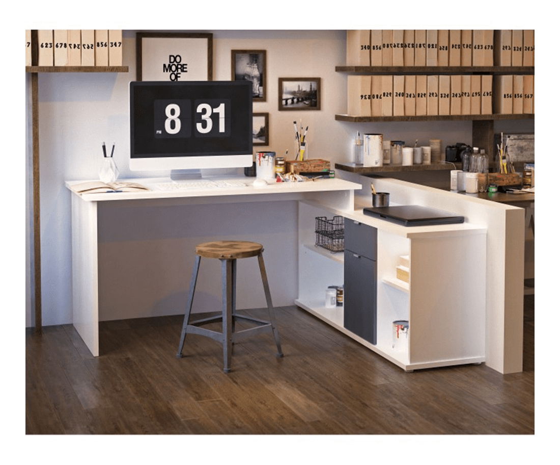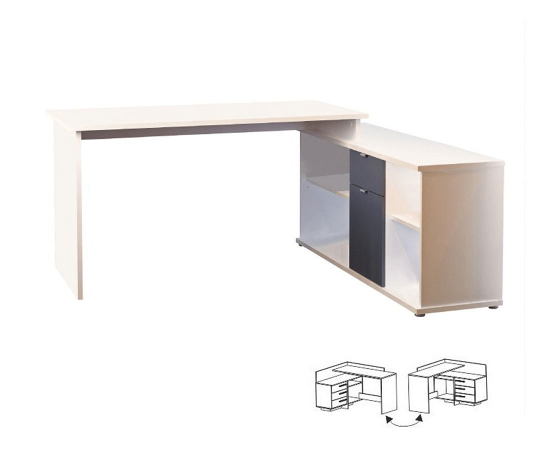 Masa PC universală Dasys oferă suficient spațiu de stocare. Masa PC este universală. În partea dreaptă se află rafturi deschise iar pe mijloc un dulap cu un sertar. Se livrează dezasamblată.