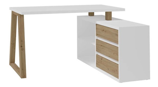 Masă PC de colț Ian (Alb + stejar artisan)