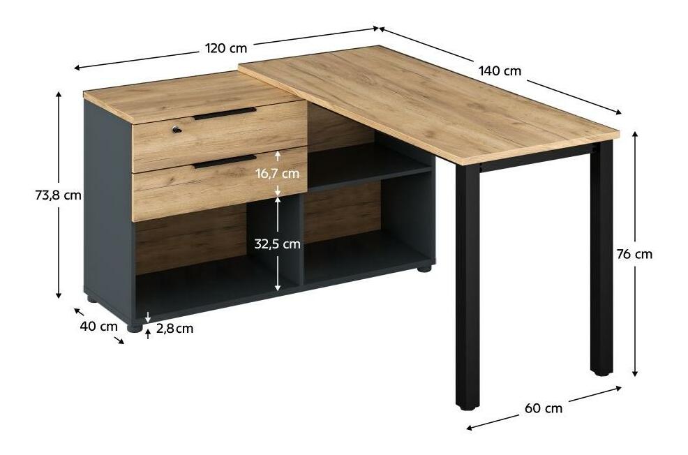 - Masă PC de colț- Tempo Kondela Klodekas 8 (Stejar artisan + negru)