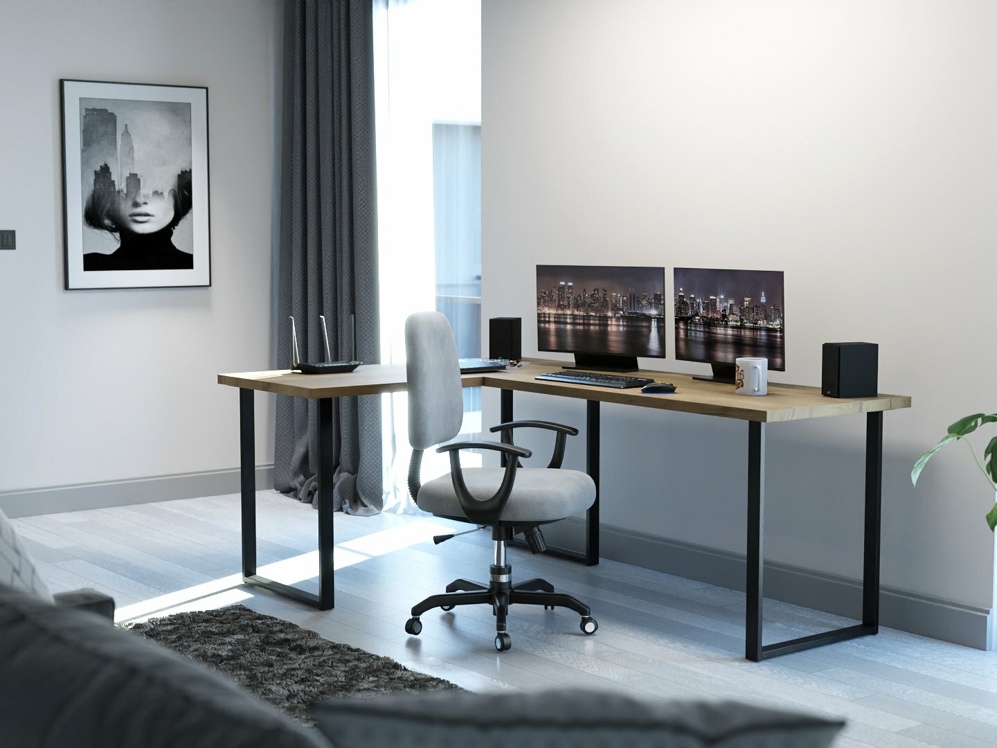 Masă PC de colț Vintid (Stejar craft + Negru)