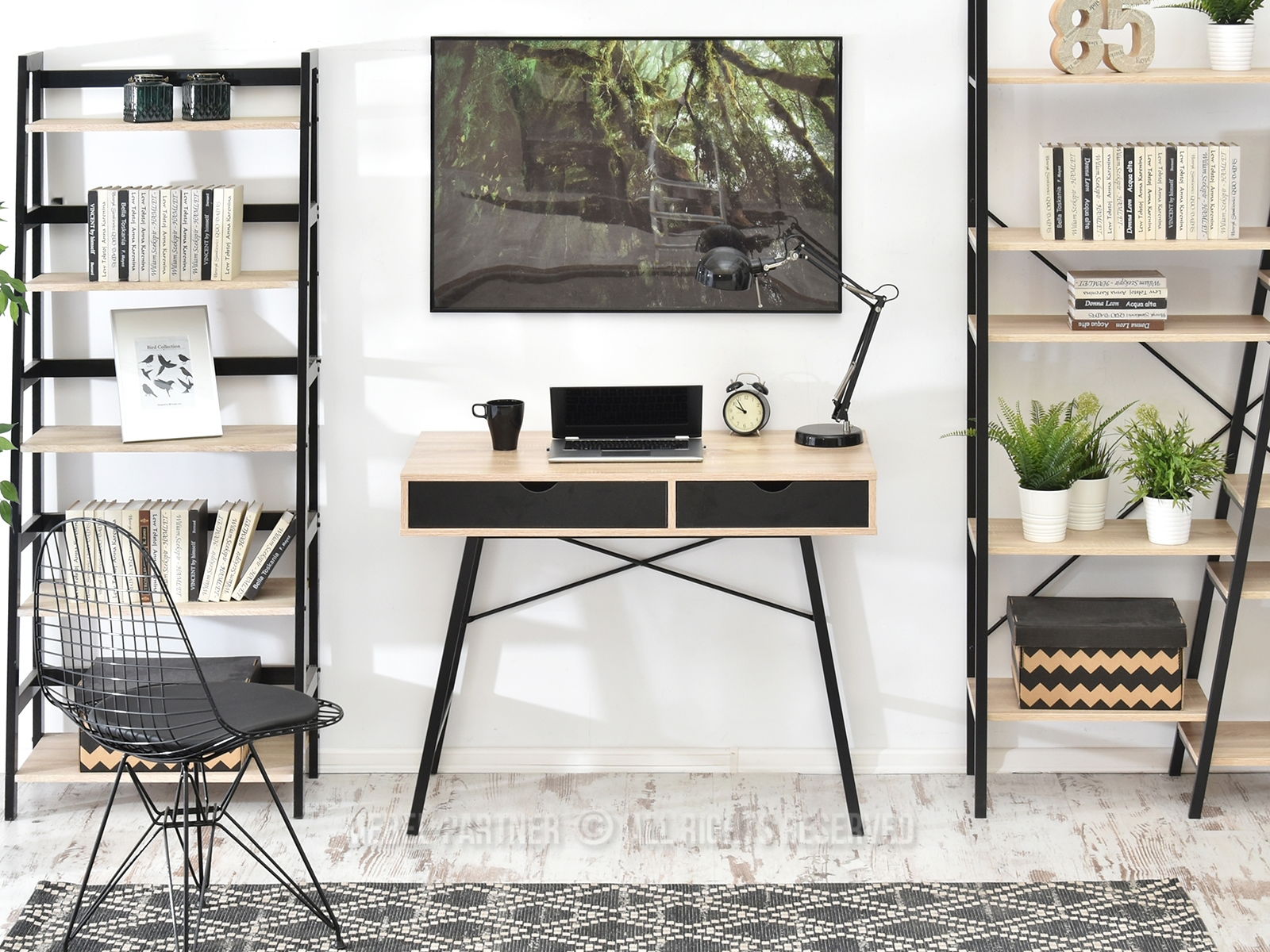 Masă PC Fallon (stejar + negru)