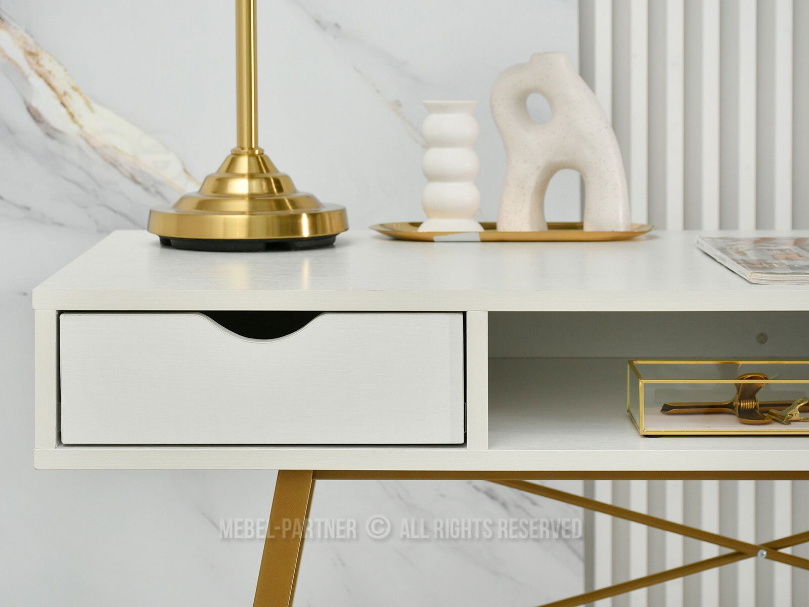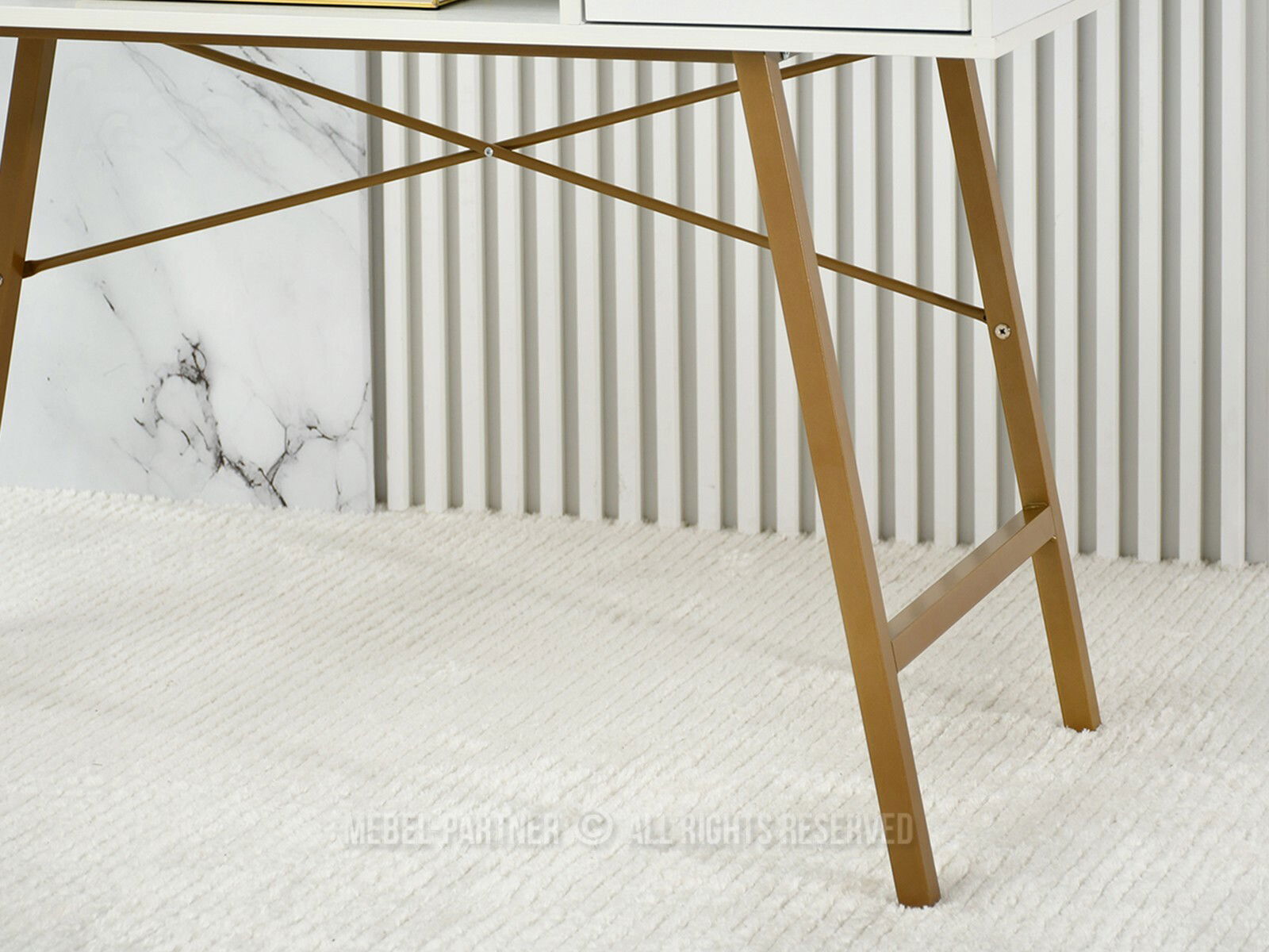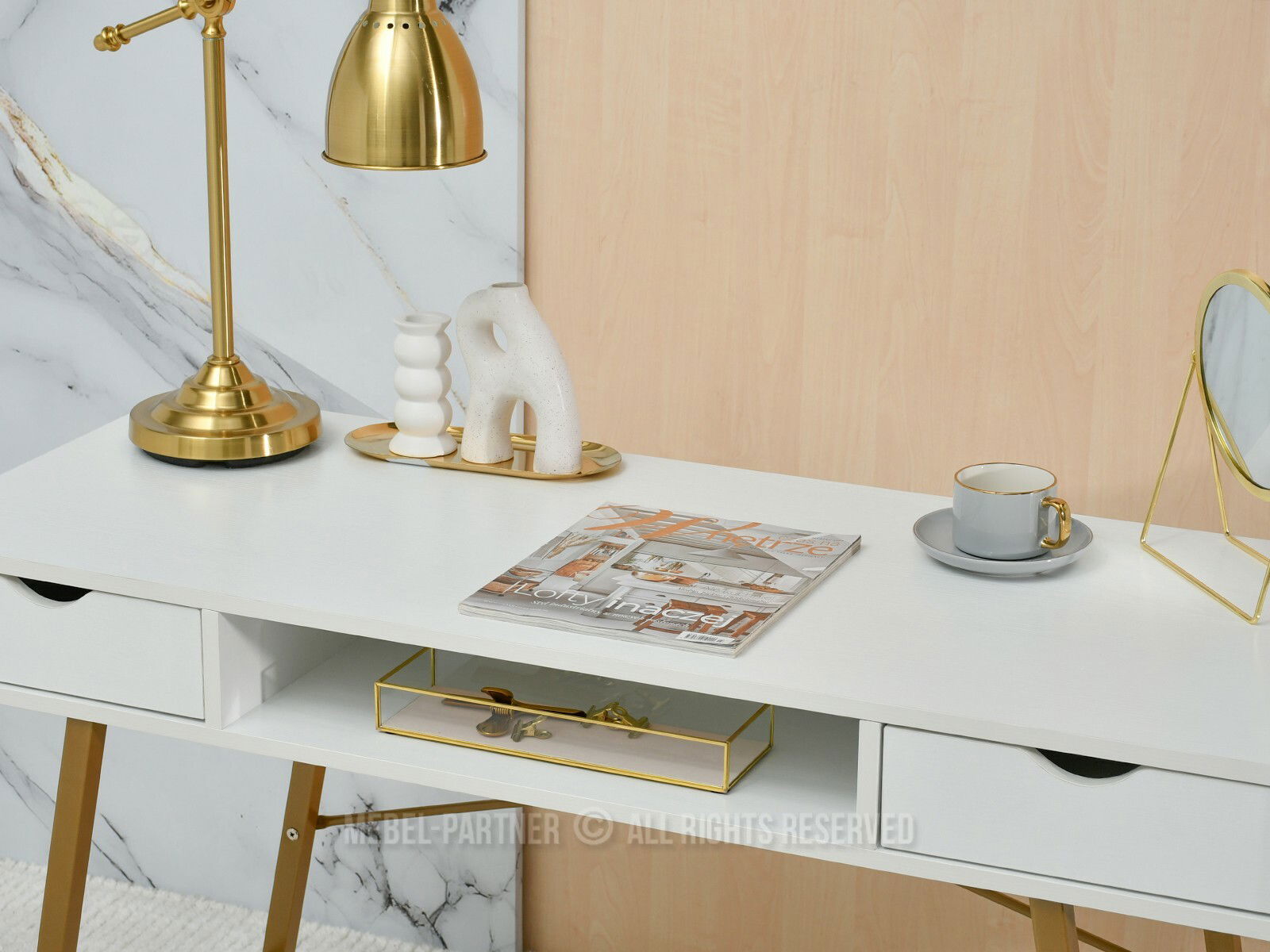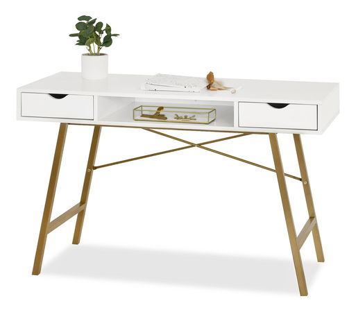 Masă PC Gavon (lemn alb + auriu)