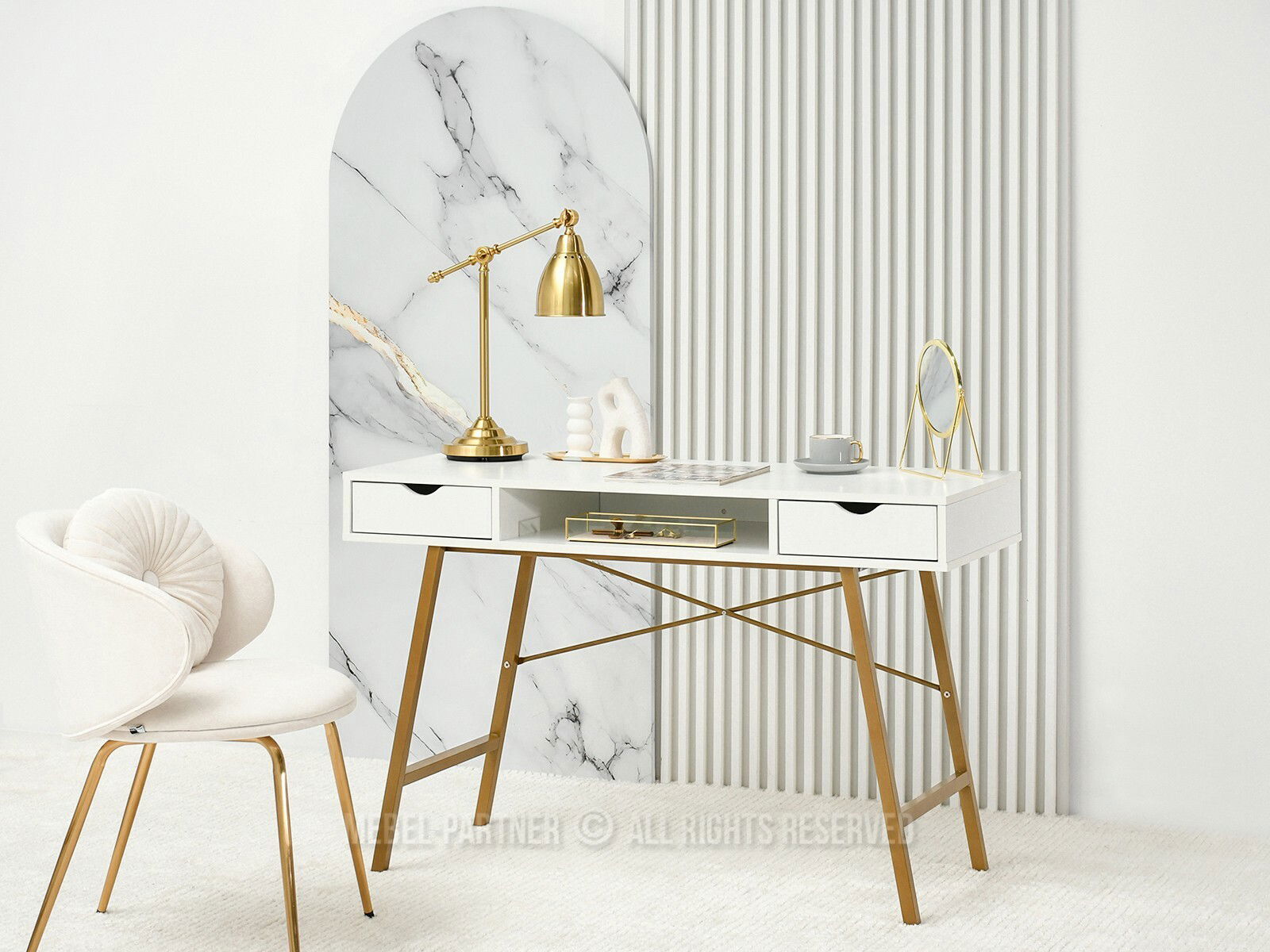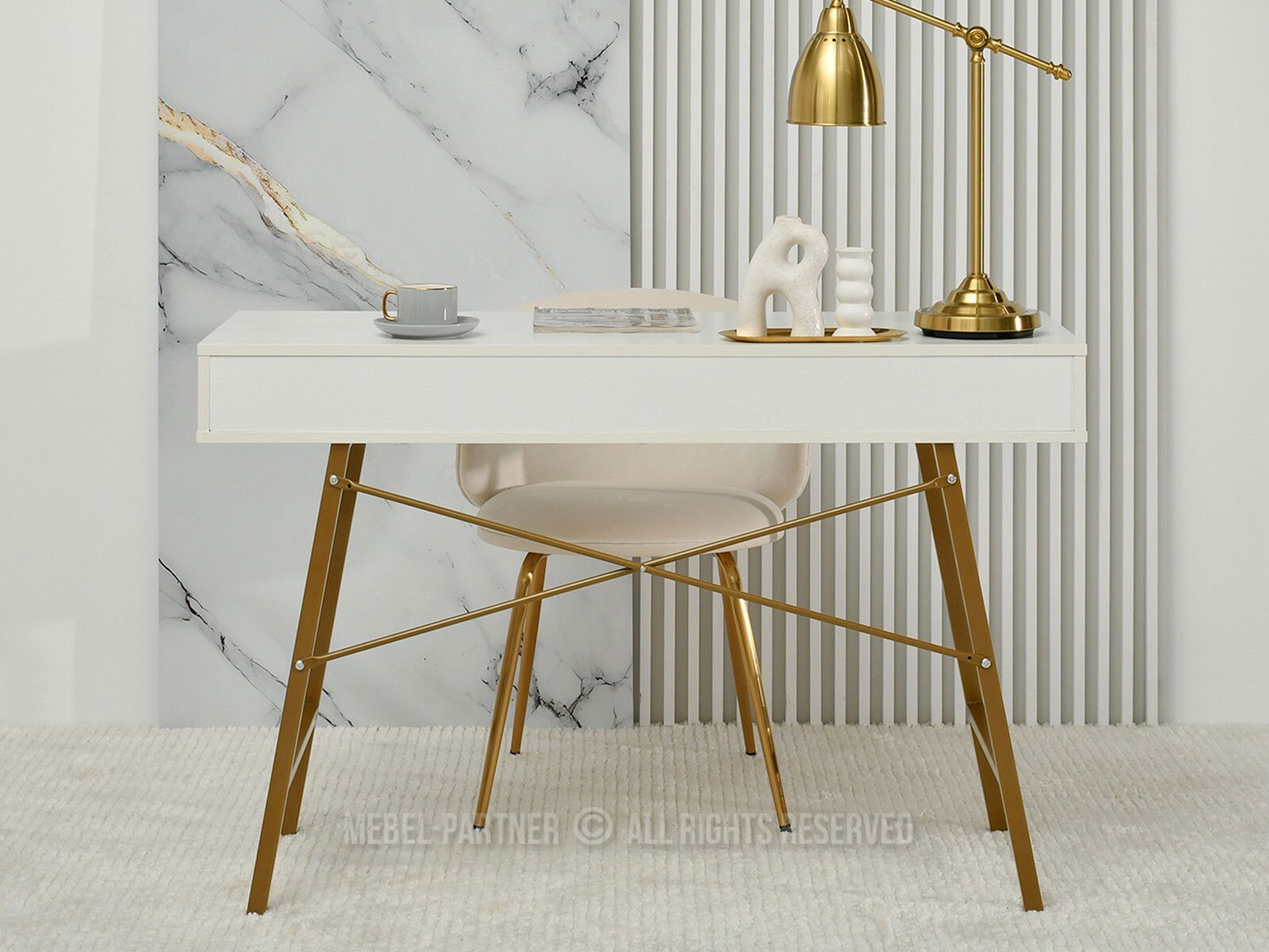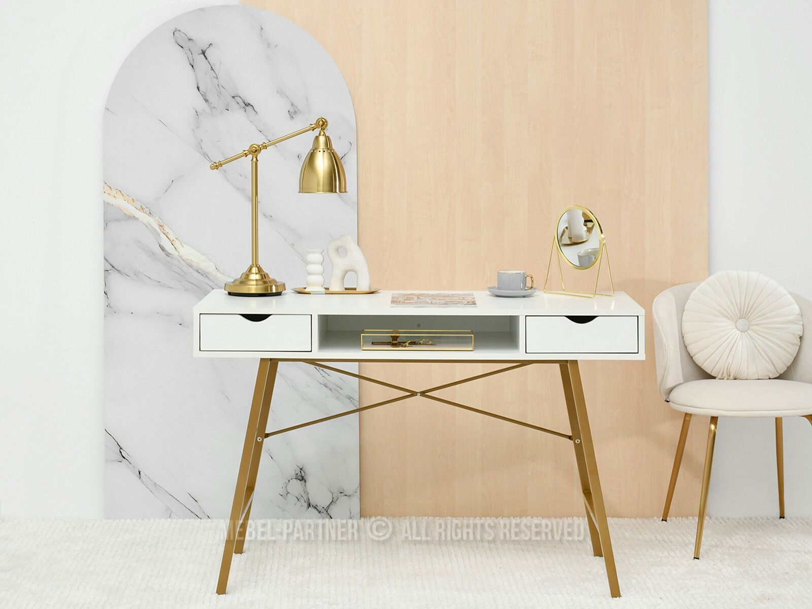 Masă PC Gavon (lemn alb + auriu)