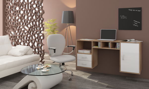 Masă PC Herma stejar sonoma deschis + alb lucios