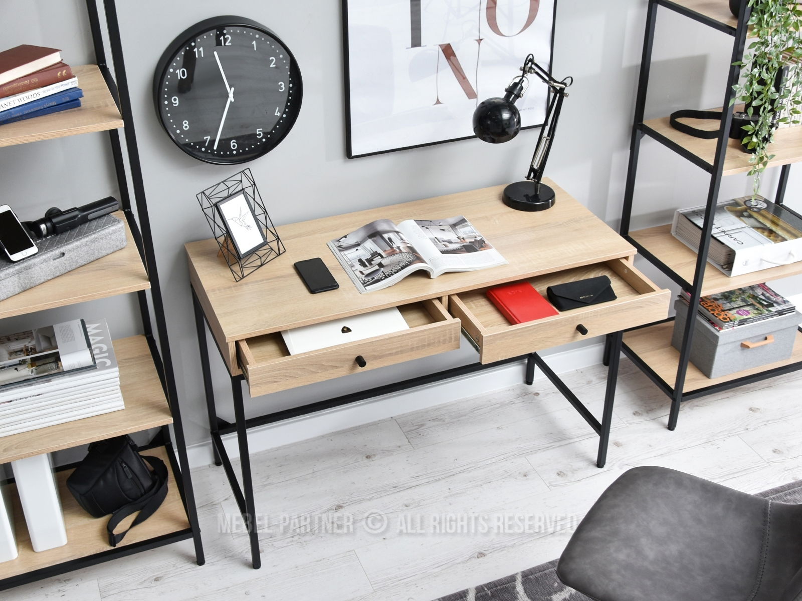 Masă PC Kaplan (stejar + negru)