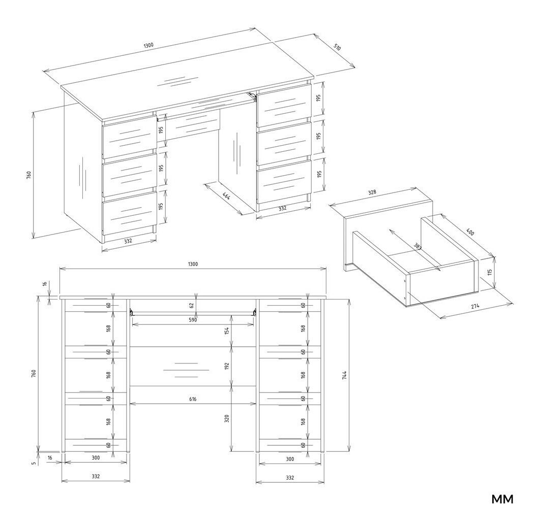 - Două corpuri laterale cu sertare spațioase pentru depozitarea documentelor, accesoriilor și echipamentelor.