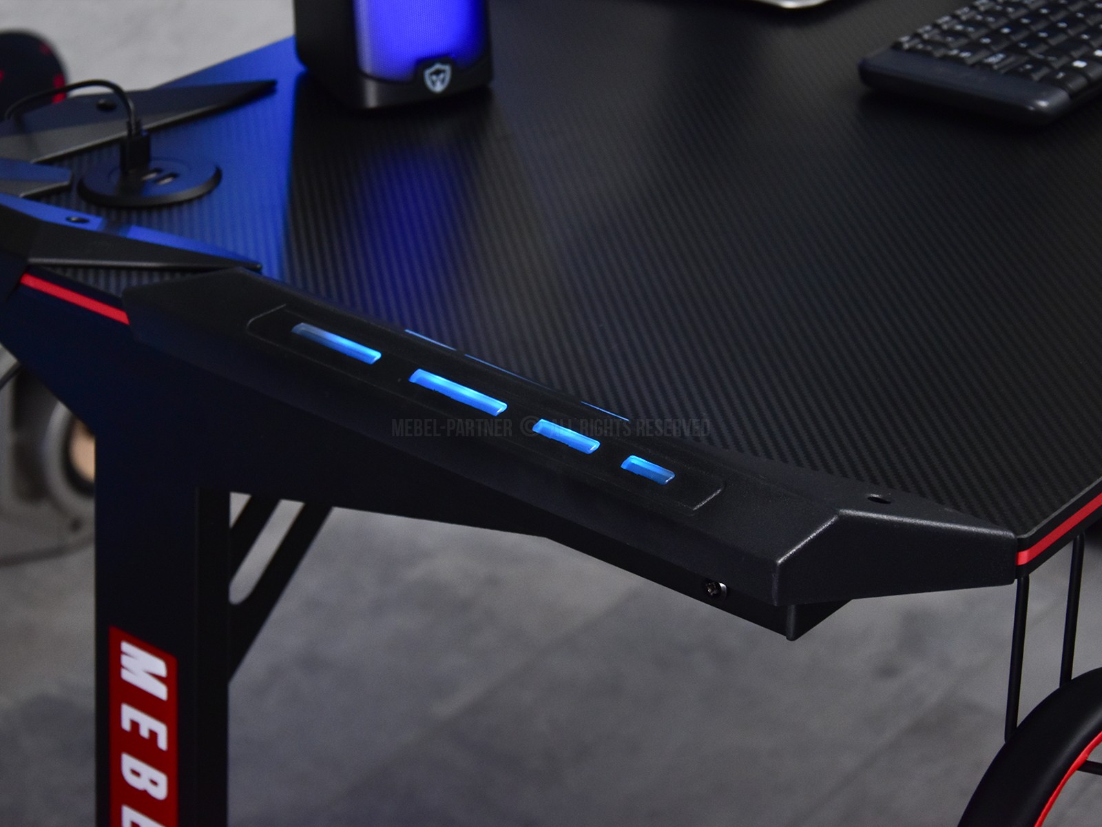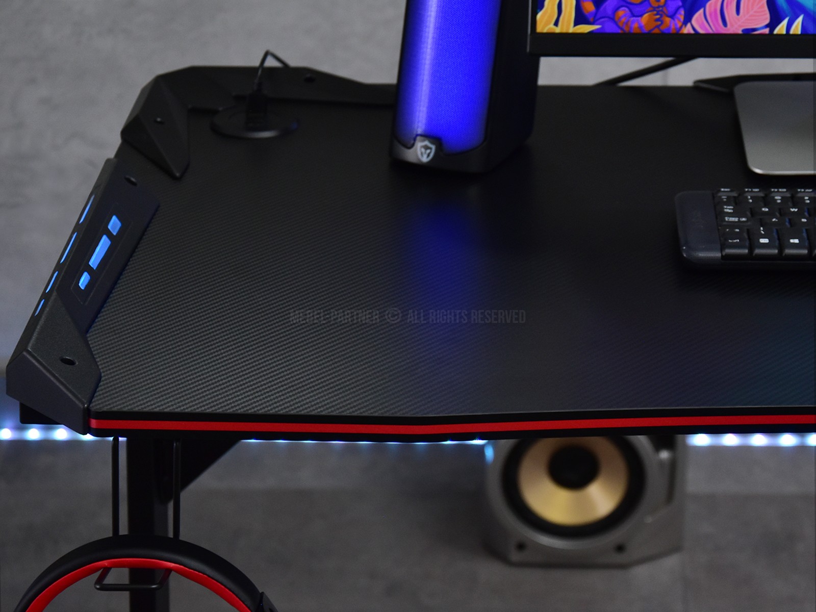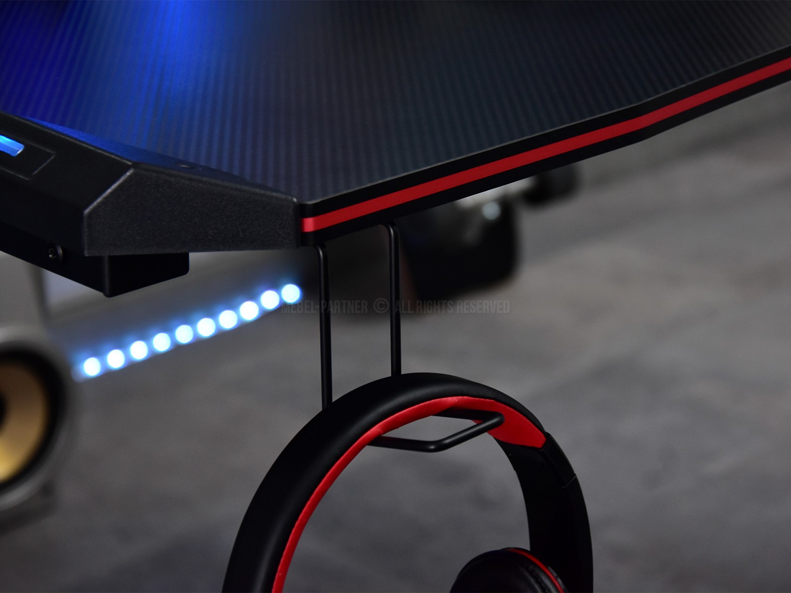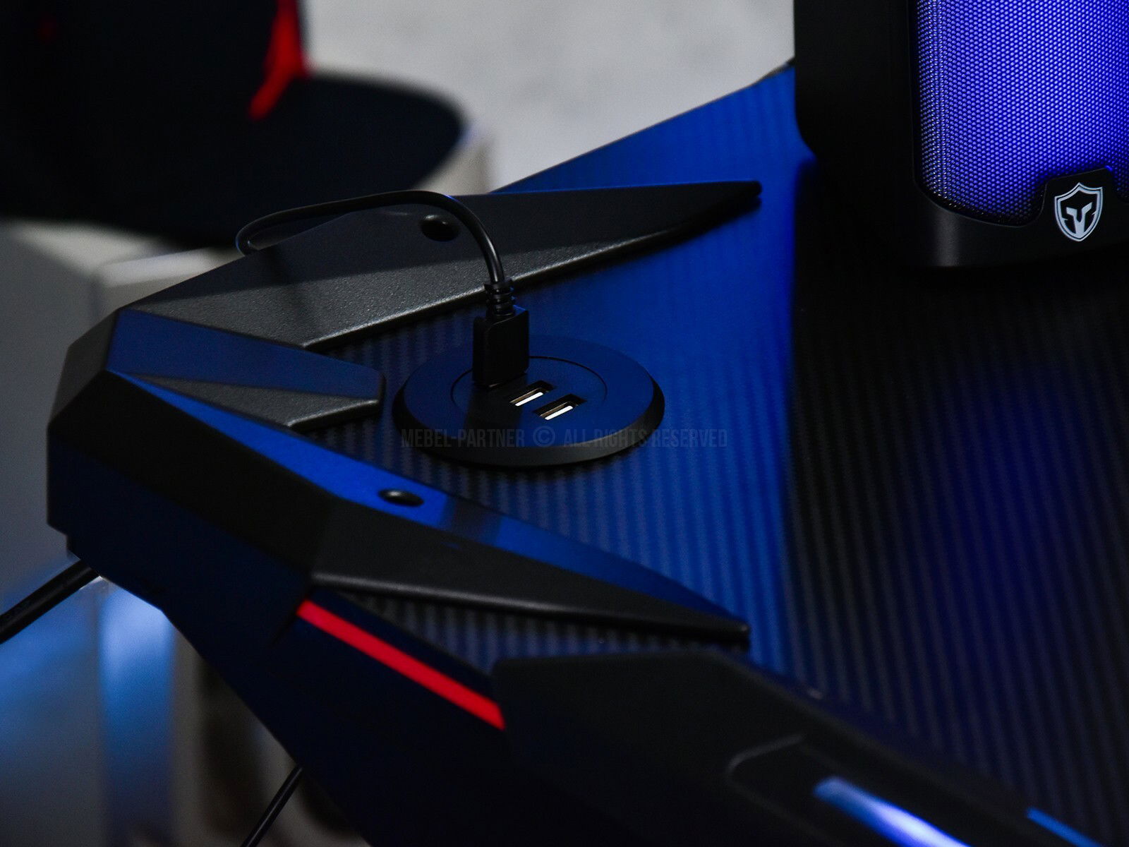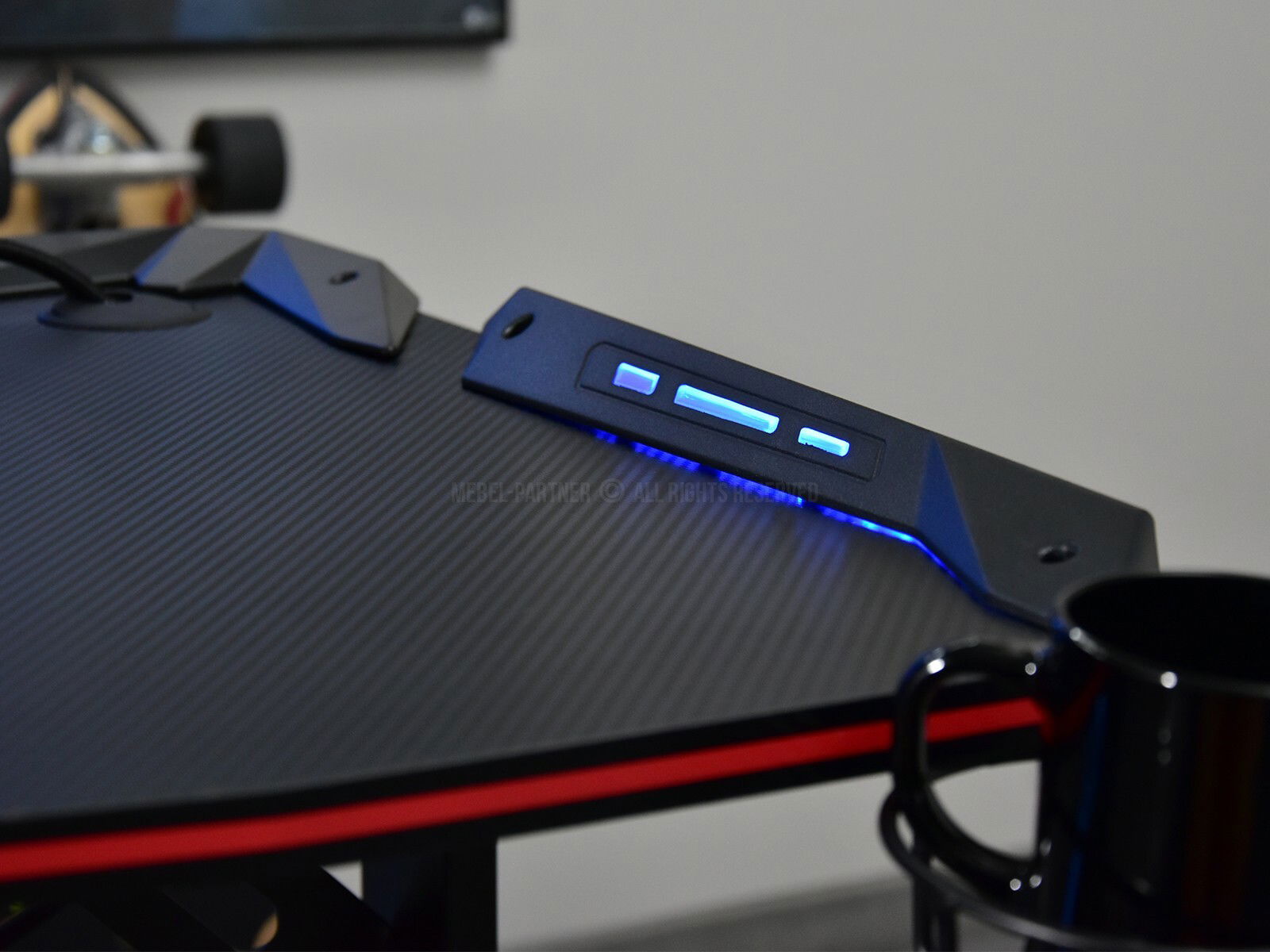 partea superioară dreptunghiulară, USB, suport pentru pahare, trecere cablu, organizator pentru cabluri, 1 umeraș, iluminare LED