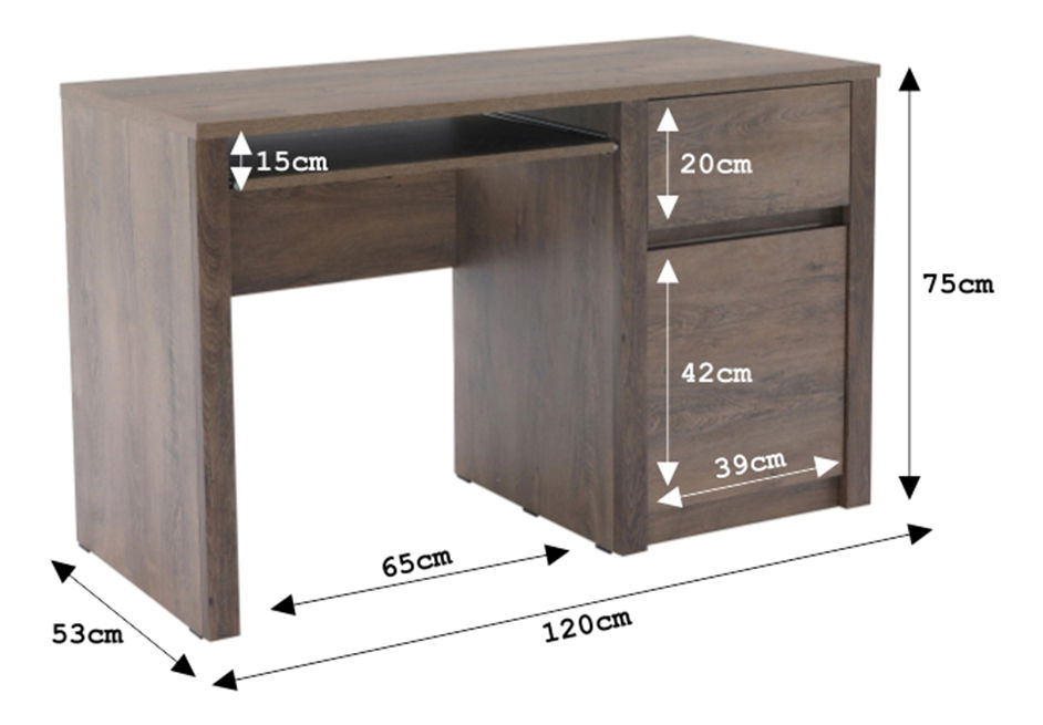 O masă de birou practică, cu sertar și dulap în dreapta. Poate fi utilizată atăt în biroul dvs. cât și în camera de zi sau camera de studenți. Masa este într-o versiune decentă de culoare a lemnului de stejar Lefkas închis.