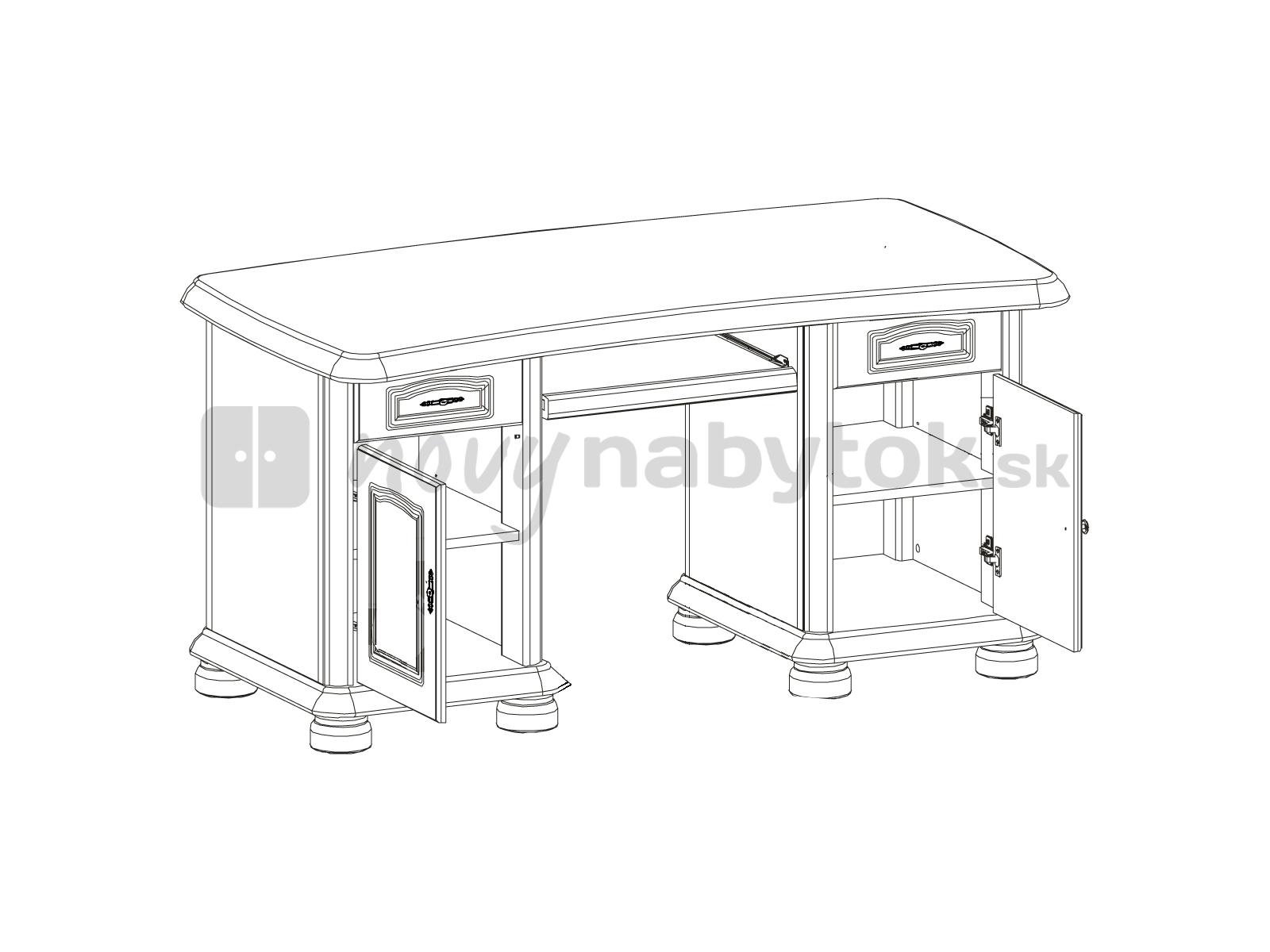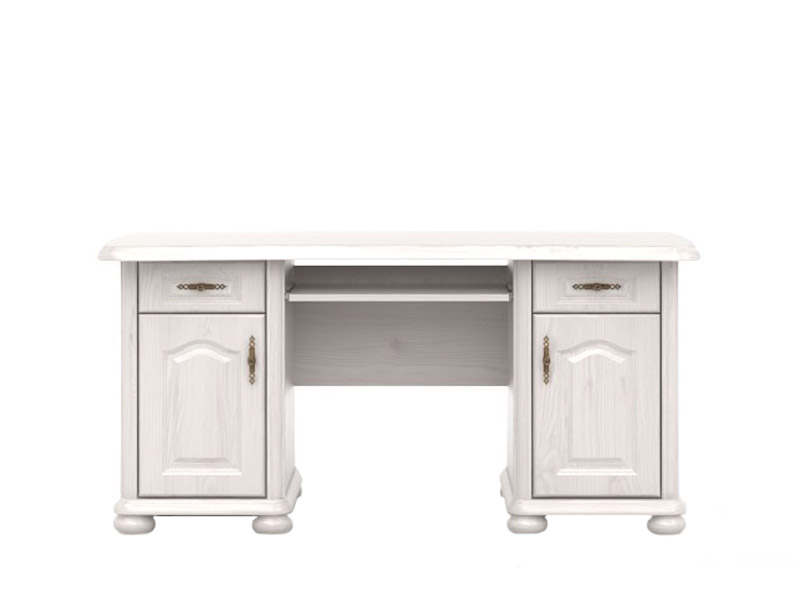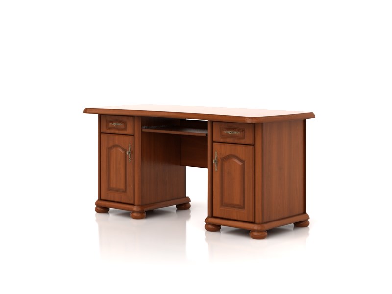 Măsuță PC în stil rustic va fi un accesoriu elegant pentru biroul vostru. Măsuța are două uși ornamentate, sertare pe partea stângă si dreaptă precum si un raft glisant pentru tastatura calculatorului. Măsuța este situată pe picioare rotunde largi.