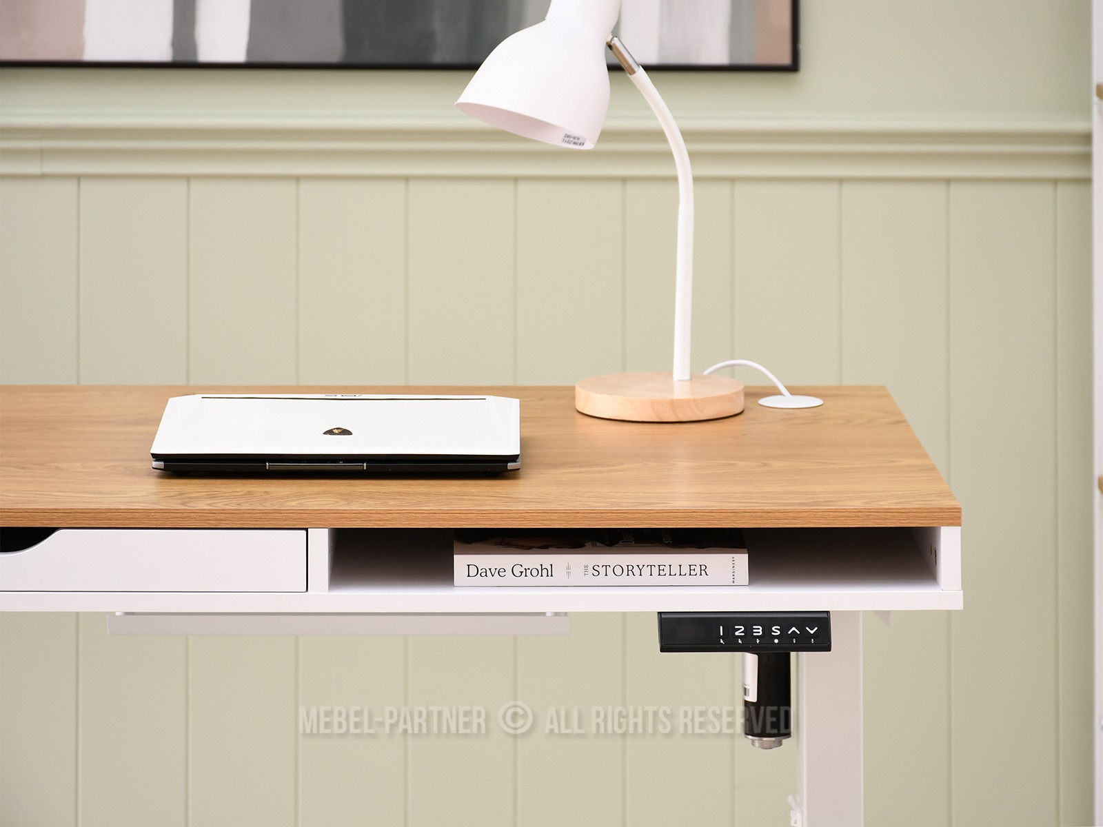 partea superioară dreptunghiulară, cu sertar, cu raft sub partea superioară, înălțime reglabilă, cu raft deschis