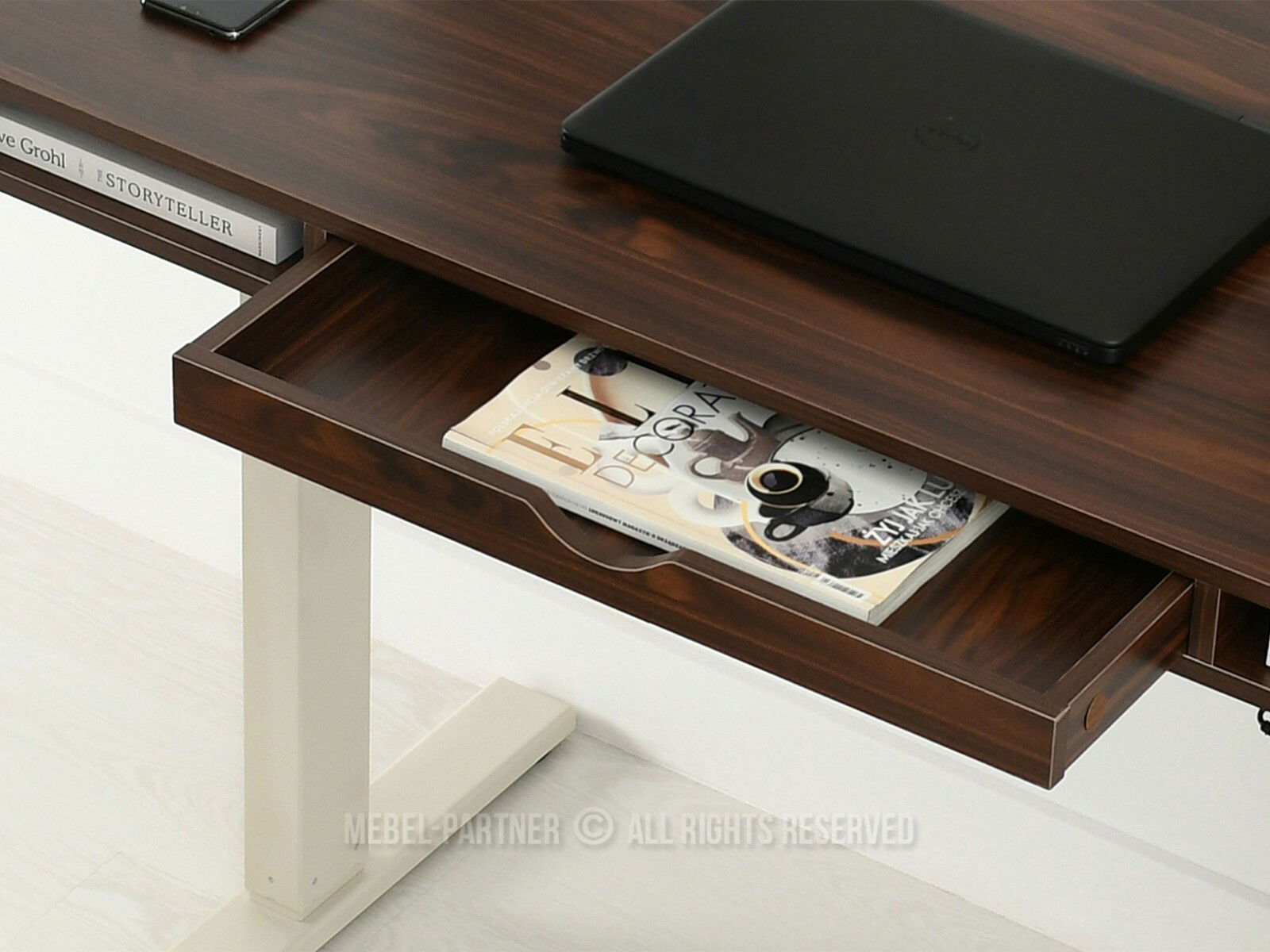 placă dreptunghiulară, cu rafturi deschise, cu sertar, cu raft suplimentar sub blat, înălțime reglabilă