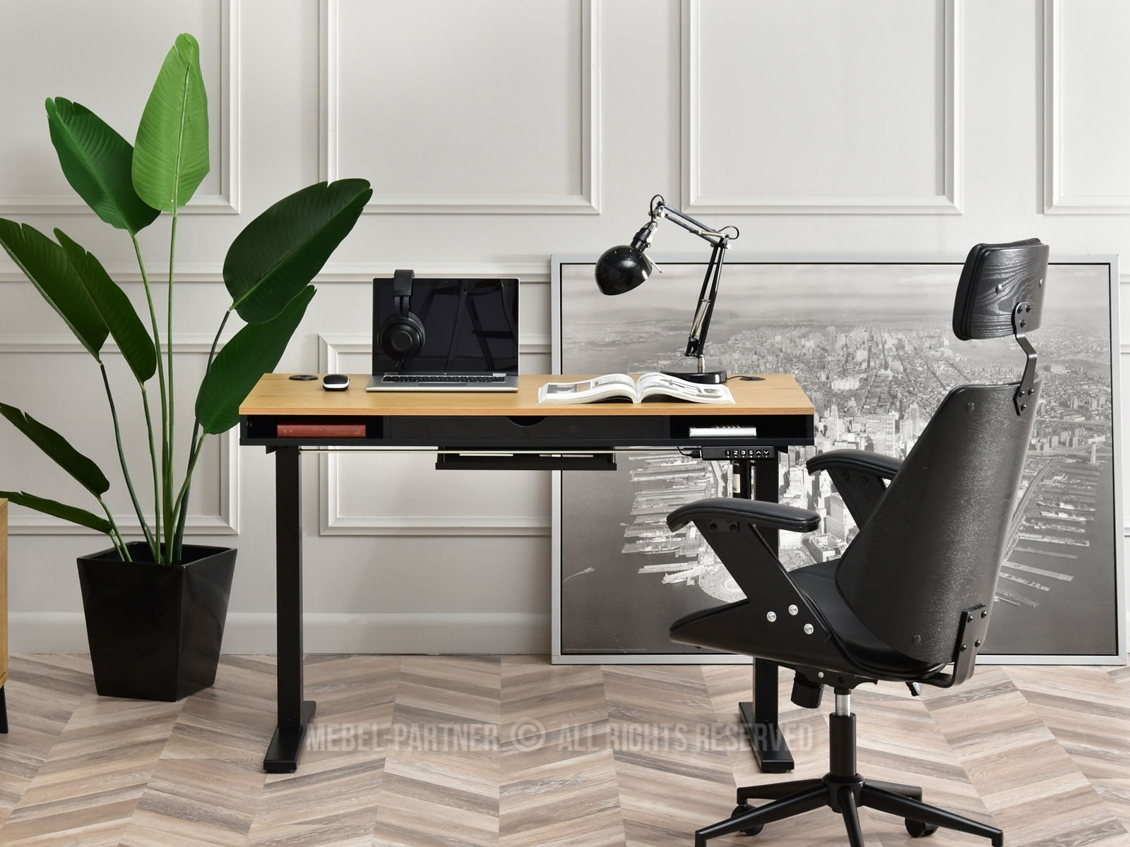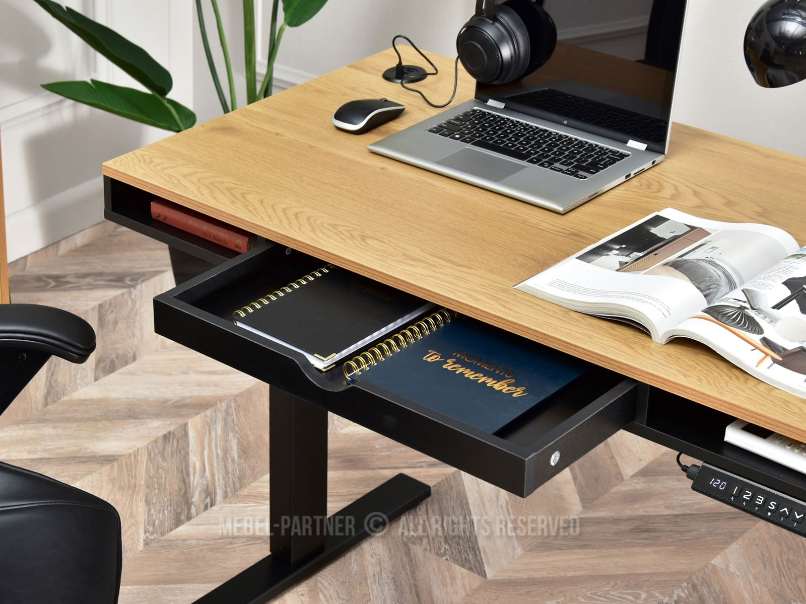 Masă PC Osto 120 (stejar negru + negru)
