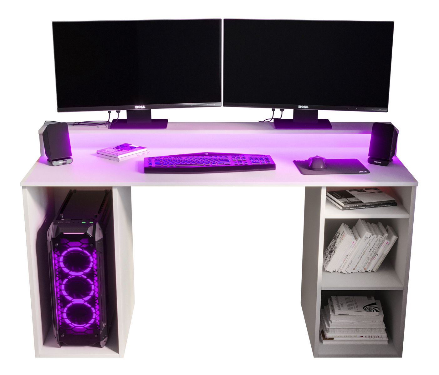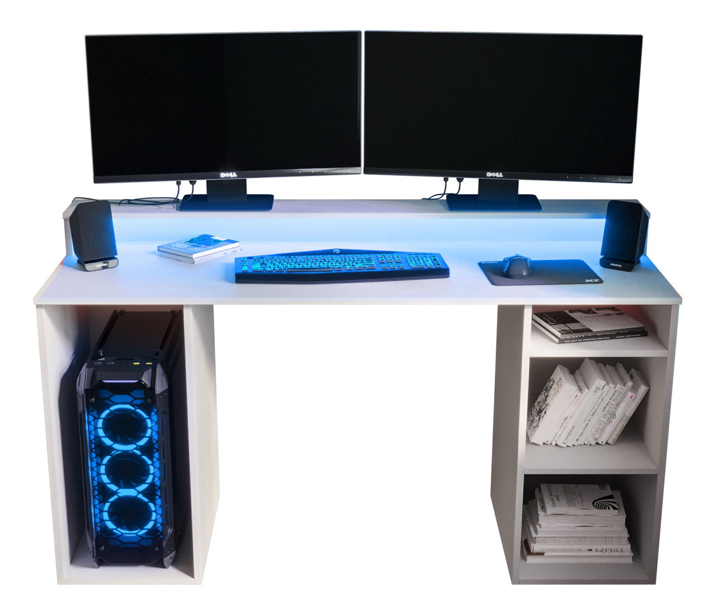 Masă PC pentru gaming Garrick 1 (biely) (cu iluminat LED RGB)