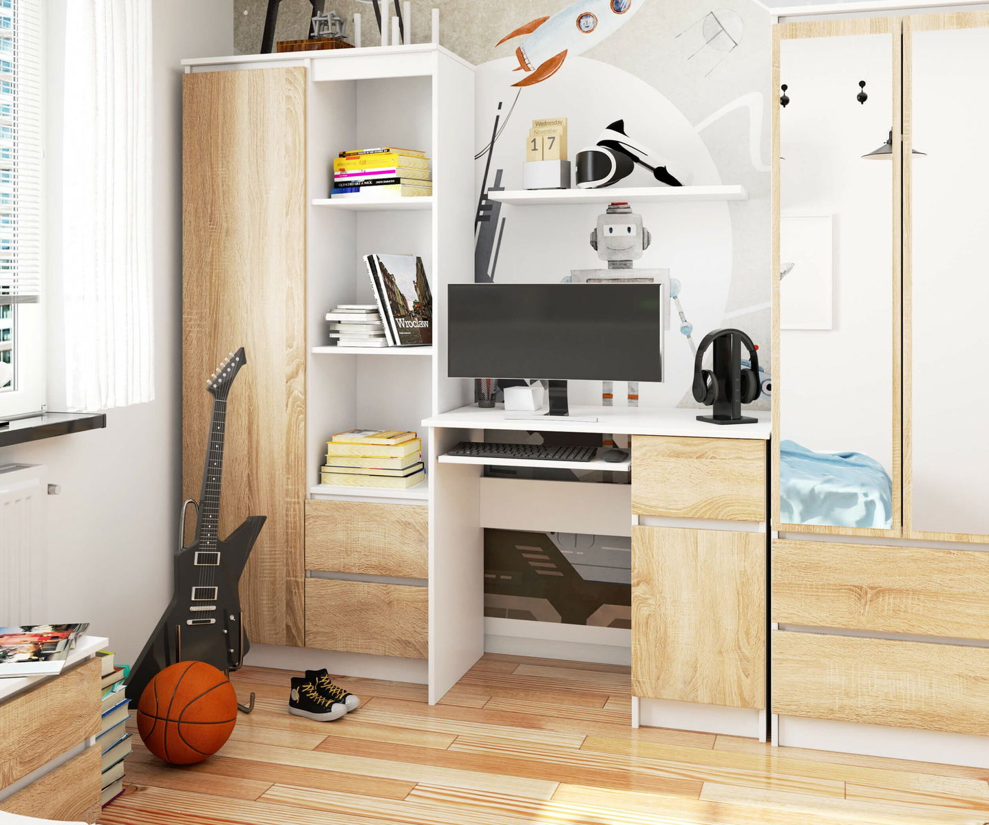 Alb + Stejar sonoma