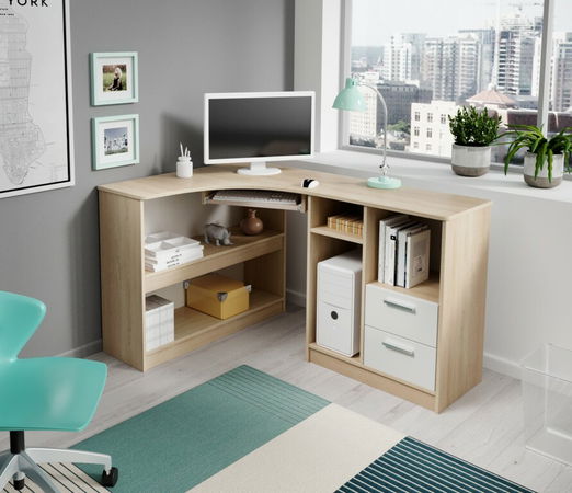 Masă PC Sabenna (stejar sonoma + alb) (D)