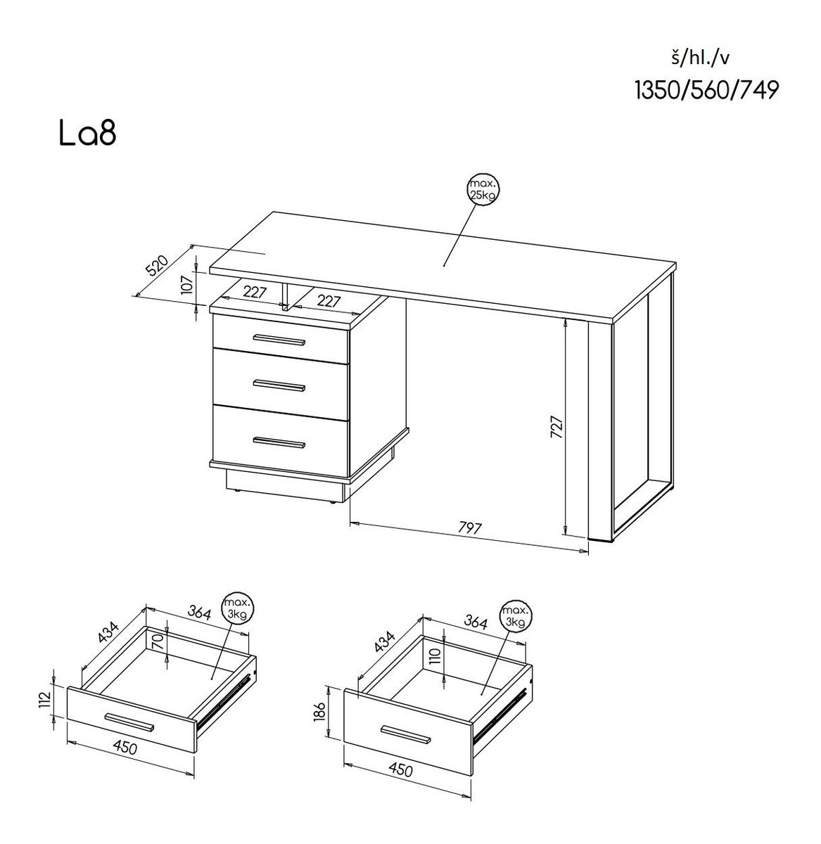 Masă PC typ LA8 Laticia (negru mat + stejar wotan)
