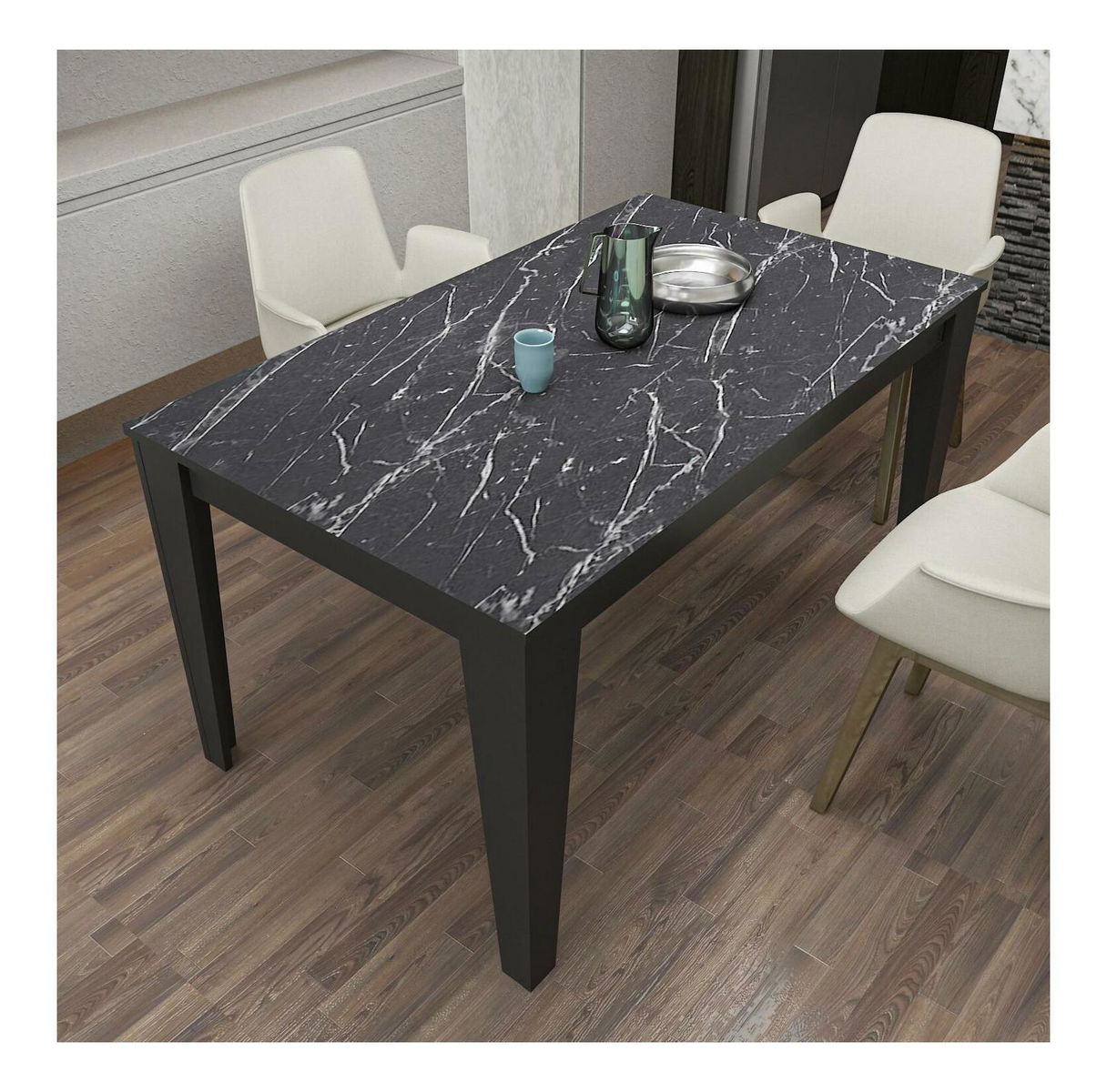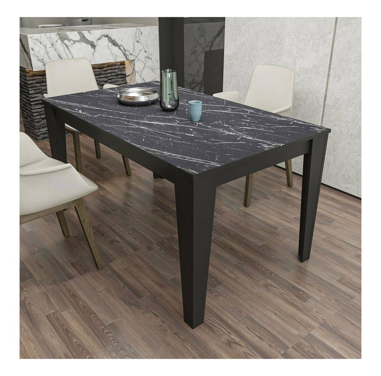 - Masă sufragerie Budha (pentru 6 persoane) (marmură negru)