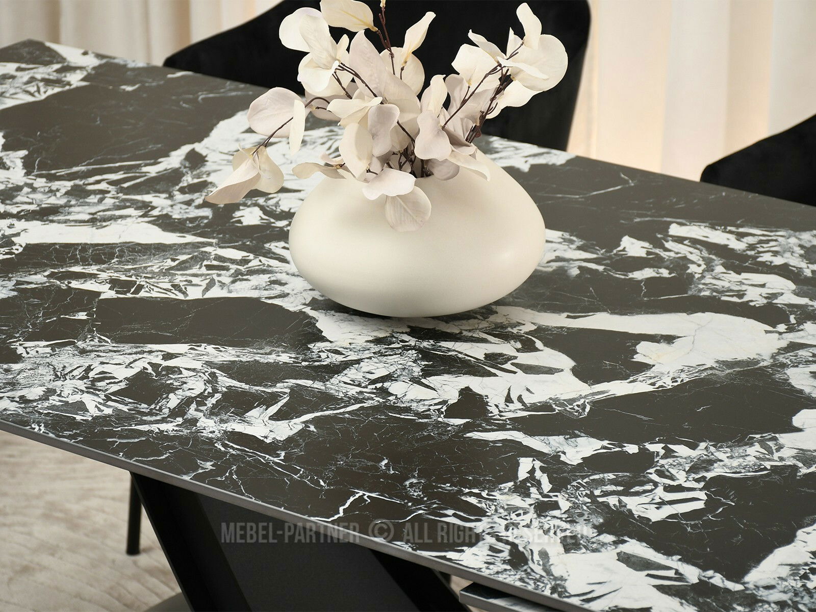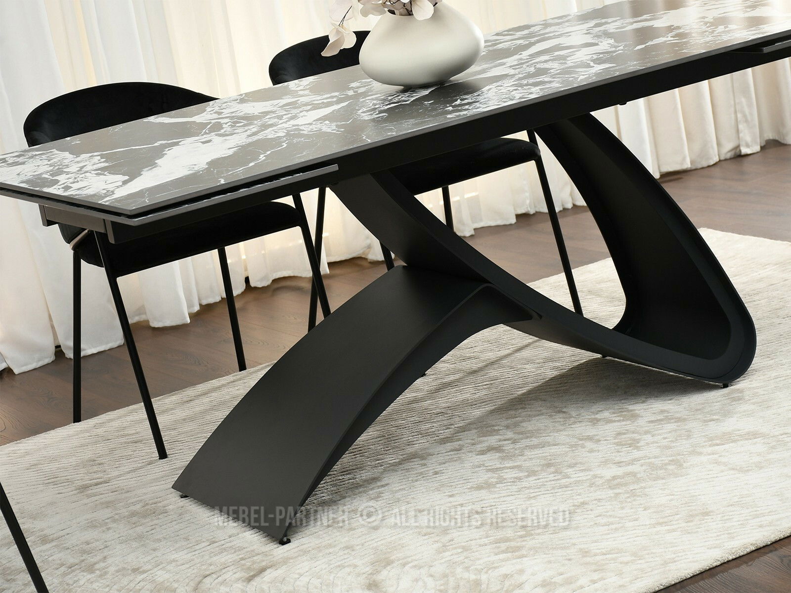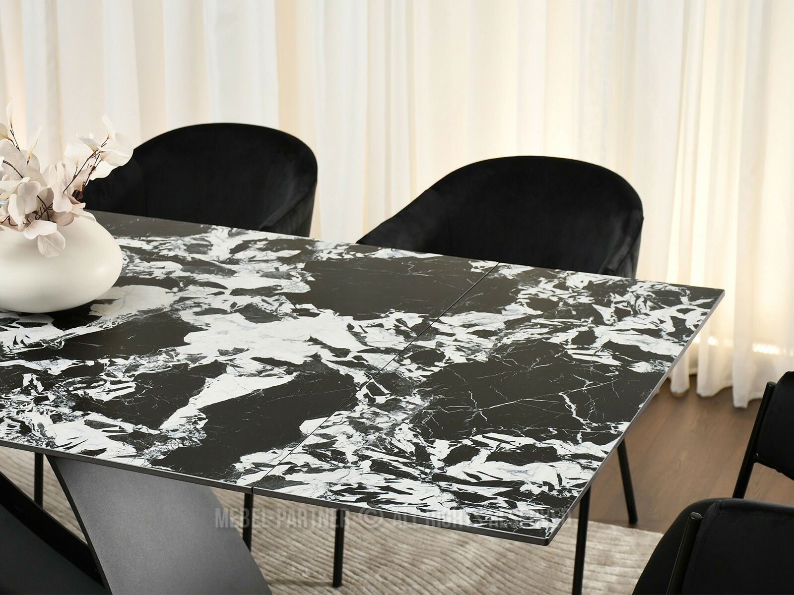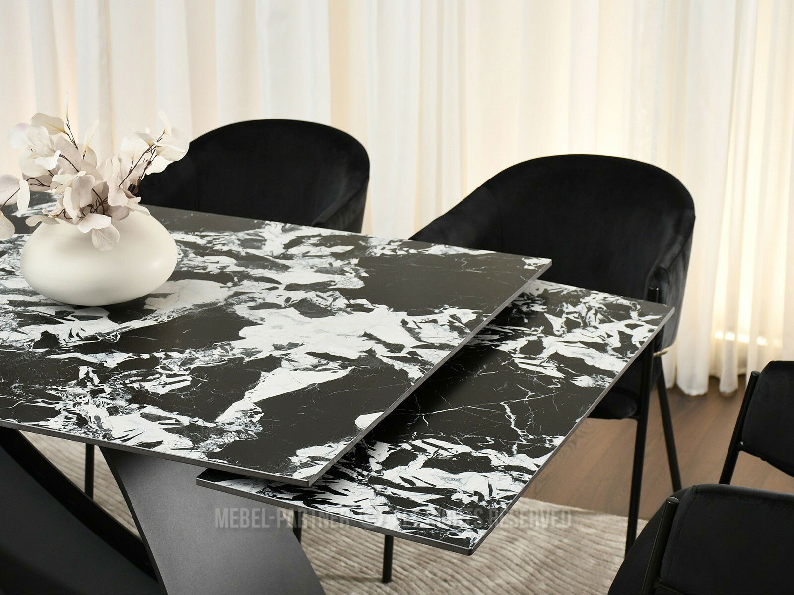 Masă sufragerie Caramelos (marmură + negru)