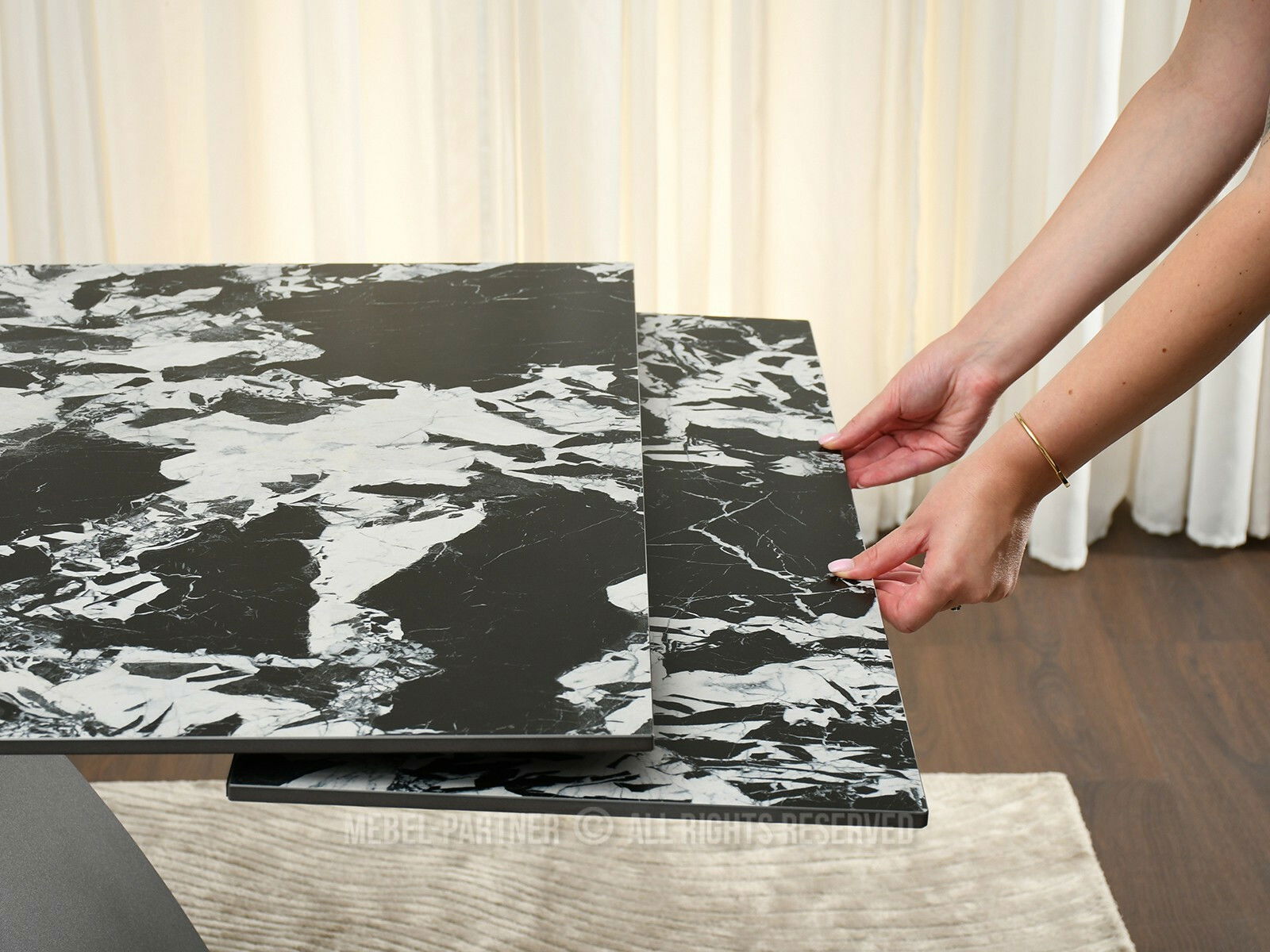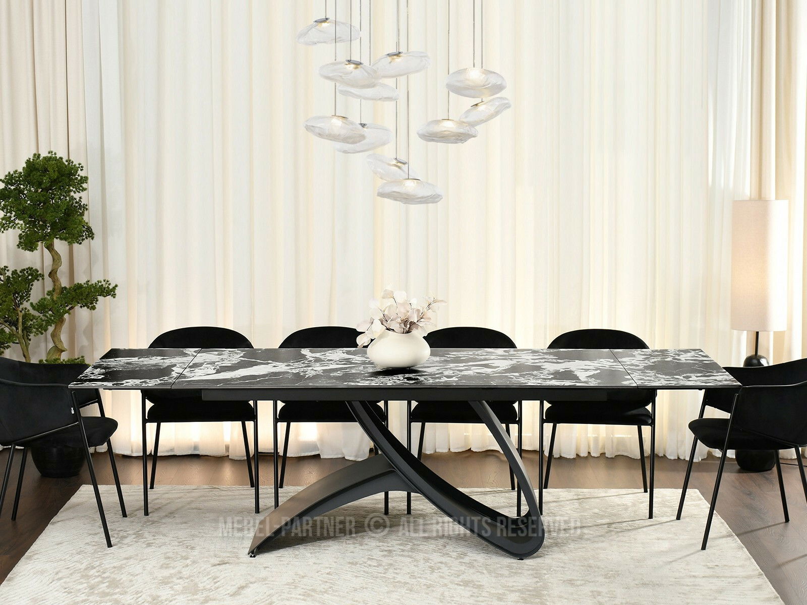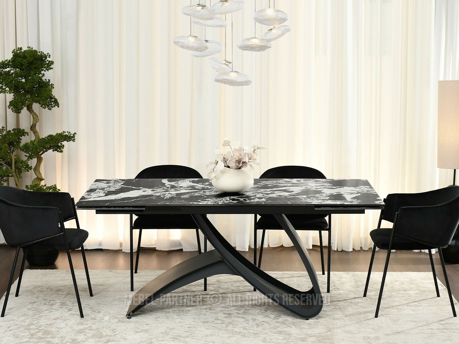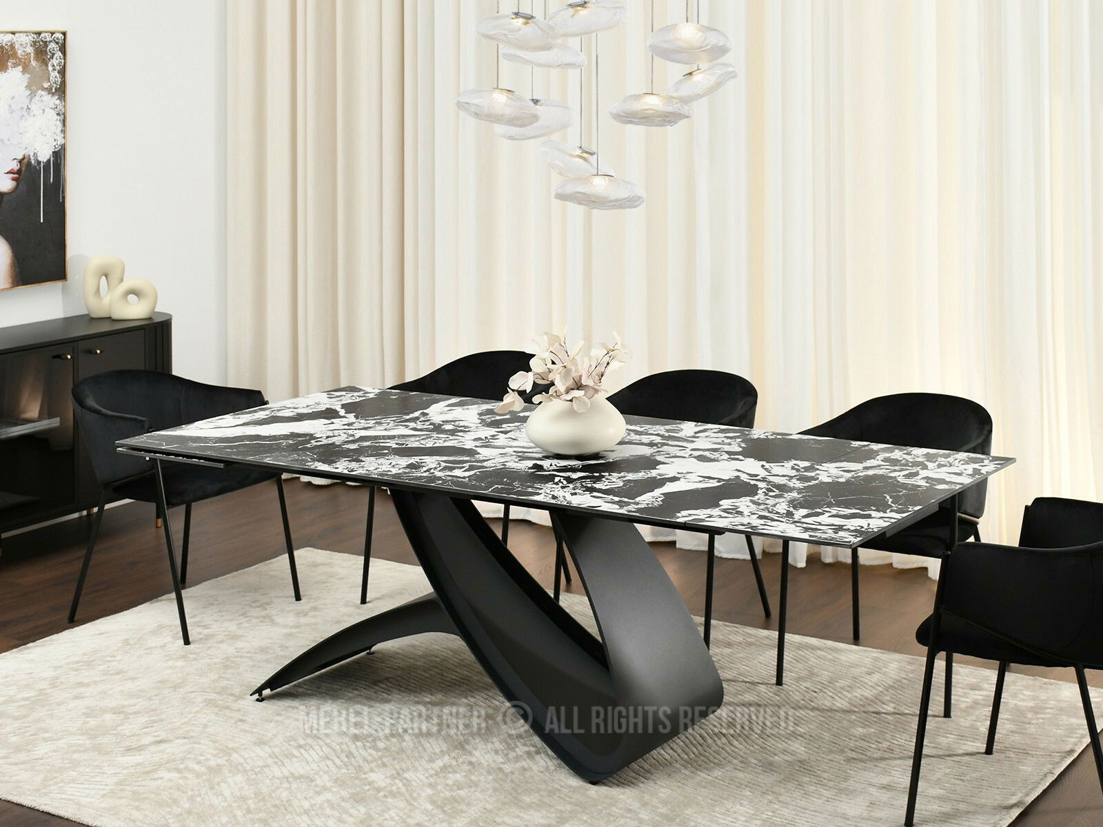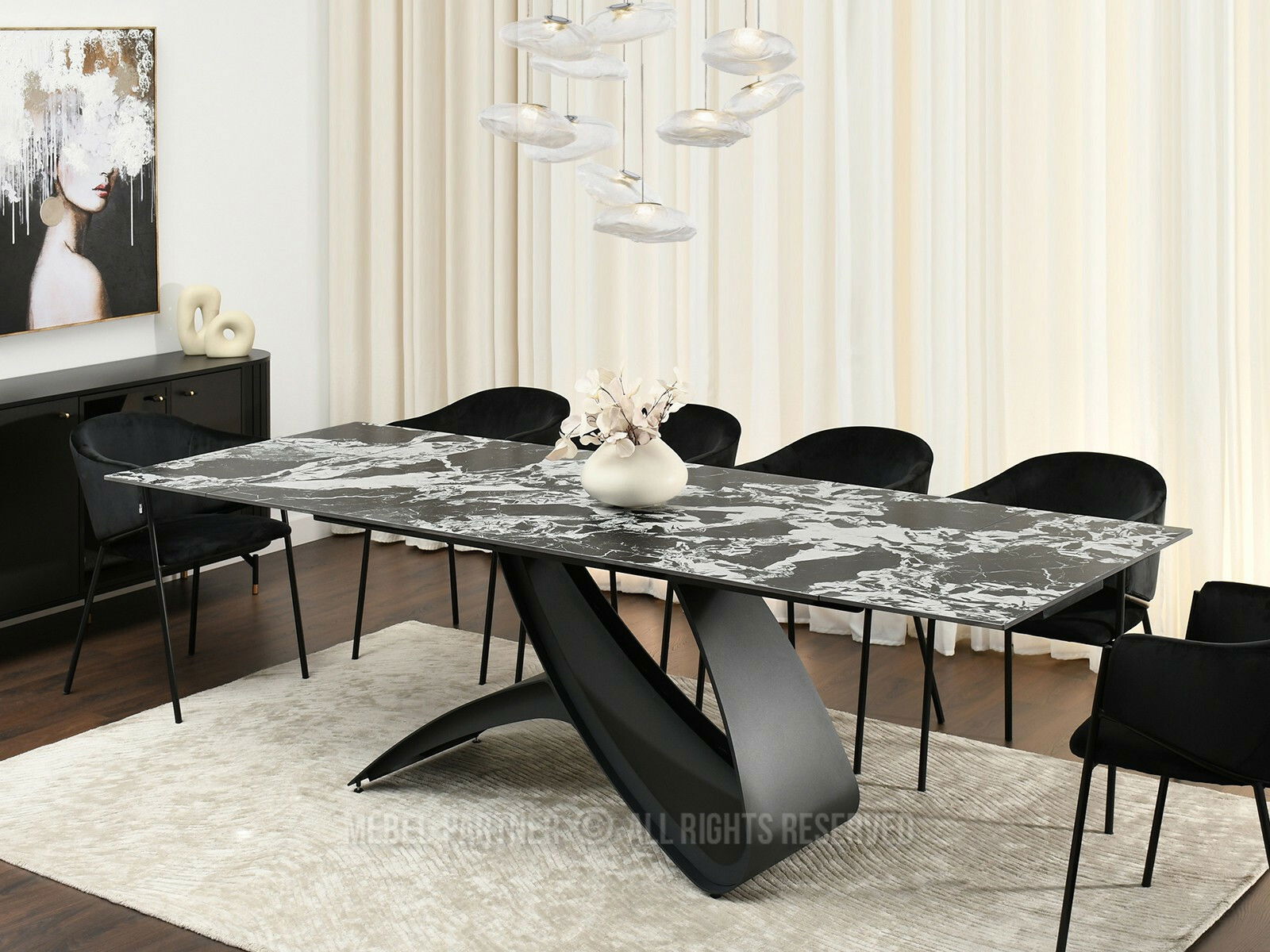 Masă sufragerie Caramelos (marmură + negru)
