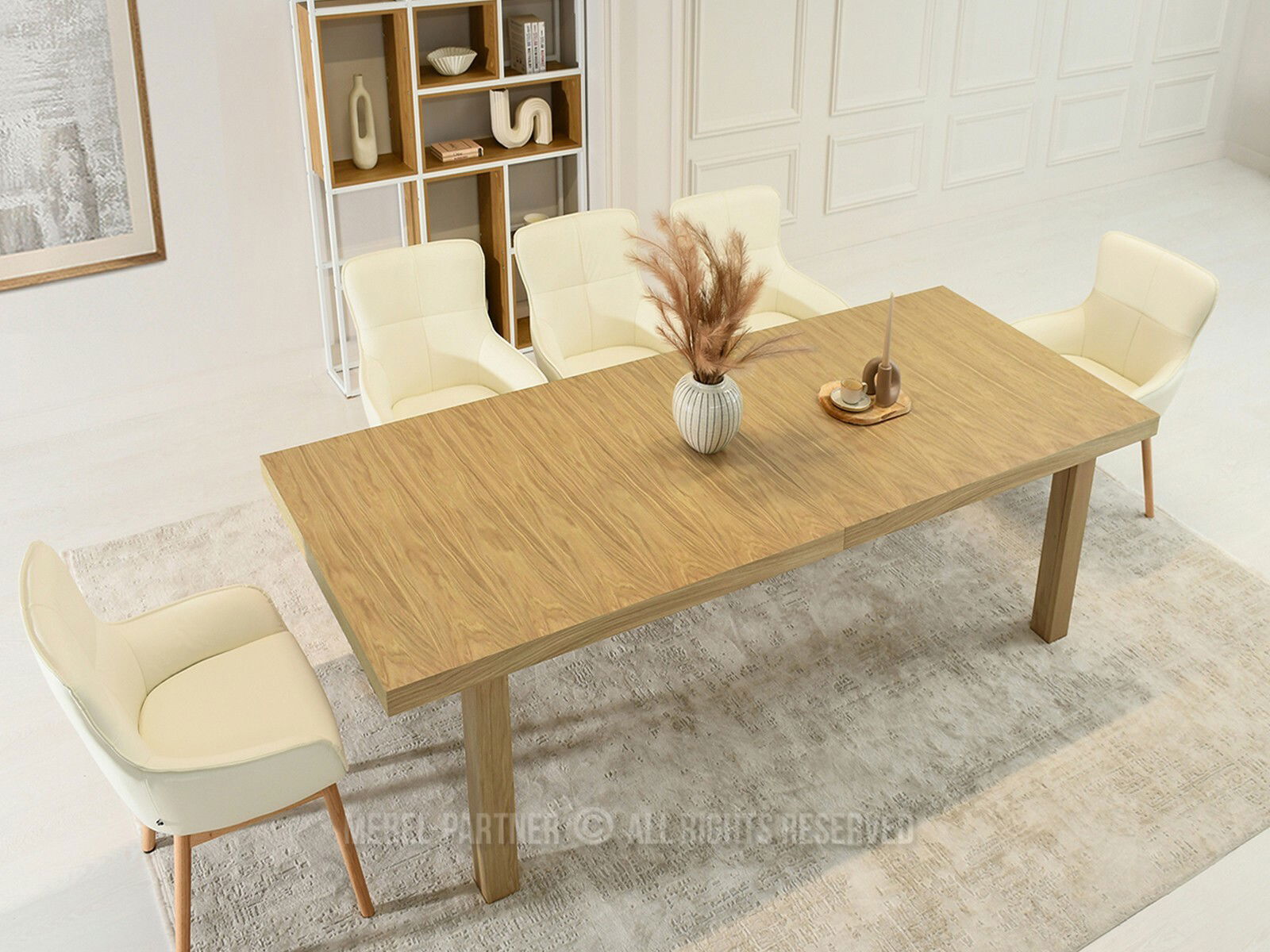 Set mobilier sufragerie Senteago 2 (pentru 6 persoane) (stejar + albastru închis)