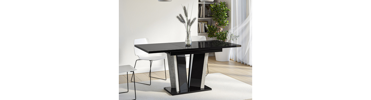 - Masă sufragerie extensibilă Ledysa II (lucios Alb + beton) (pentru 2-6 persoane)