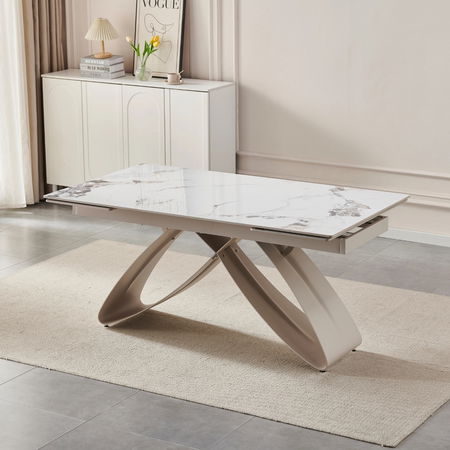 Masă sufragerie extensibilă Lungo (alb marmură + cashmir) (pentru 6-8 persoane)