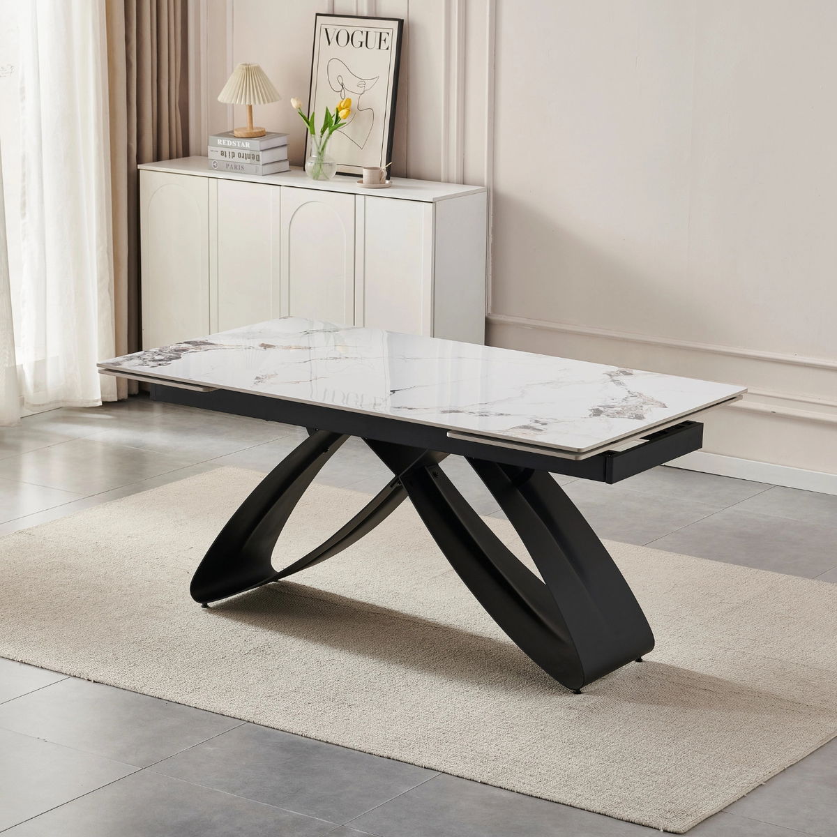 Masă sufragerie extensibilă Lungo (alb marmură + negru) (pentru 6-8 persoane)