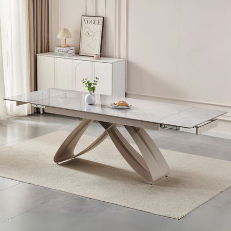 Masă sufragerie extensibilă Lungo (gri marmură + cashmir) (pentru 6-8 persoane)