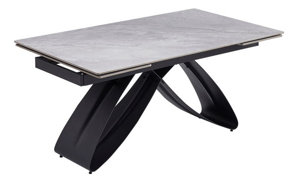 Masă sufragerie extensibilă Lungo (gri marmură + negru) (pentru 6-8 persoane)