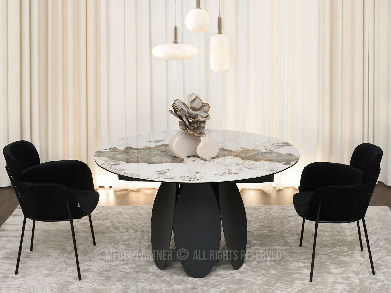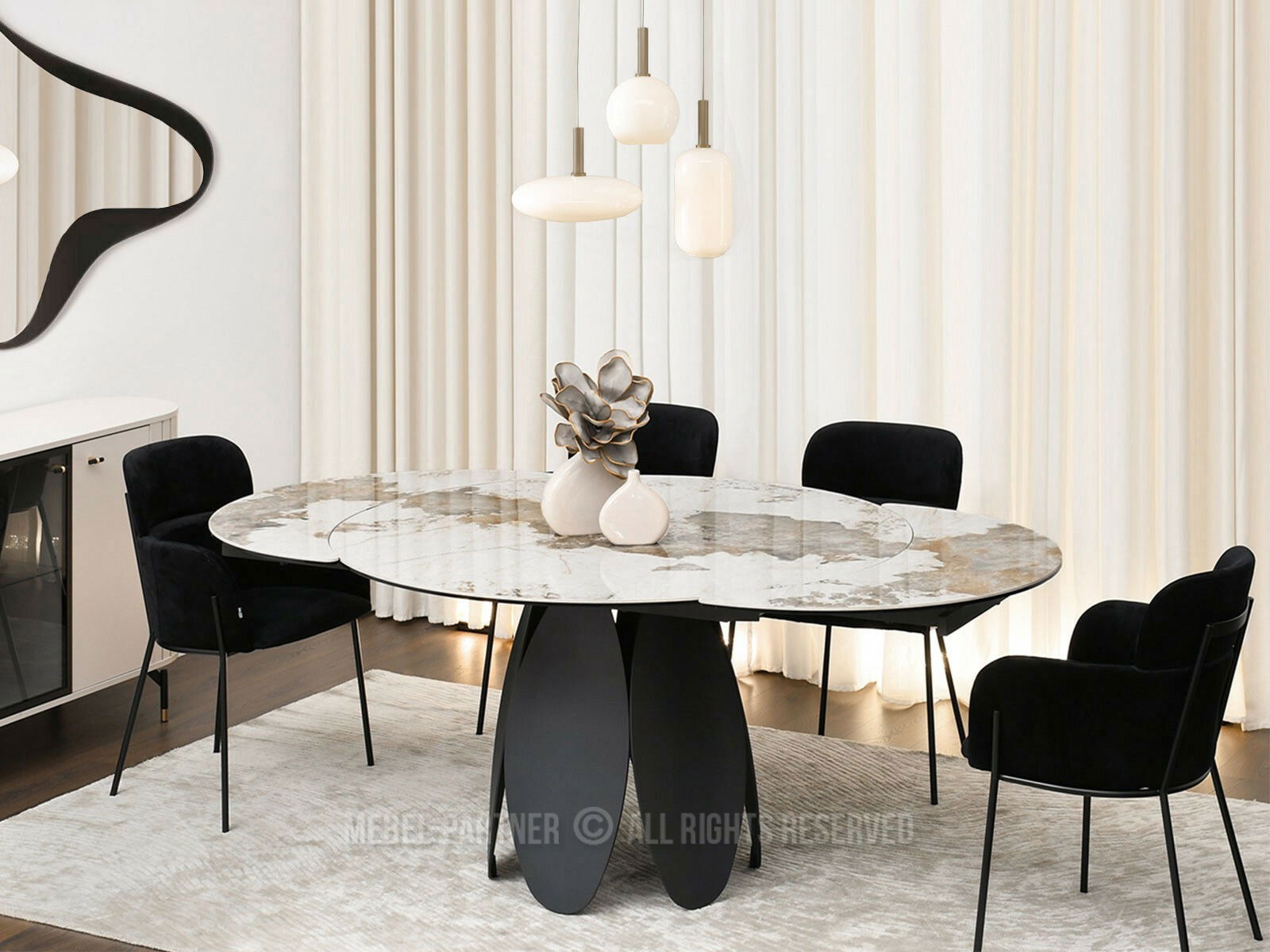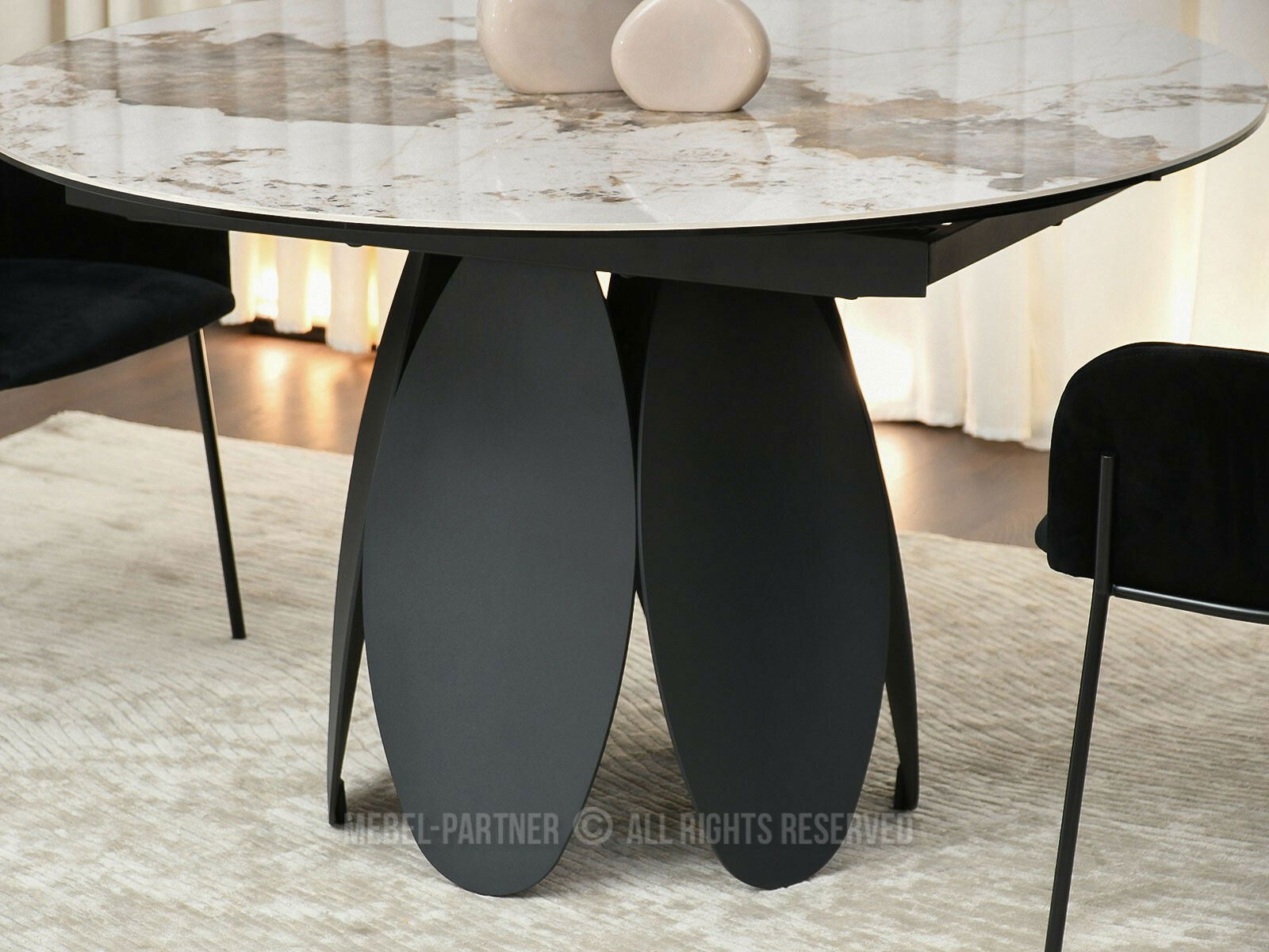 Masă sufragerie Facilidades (marmură + negru)