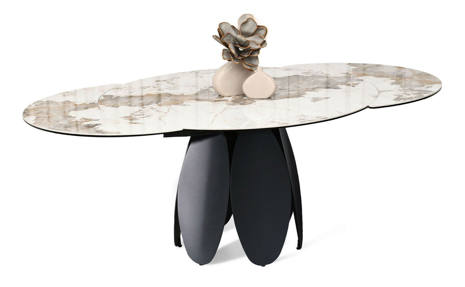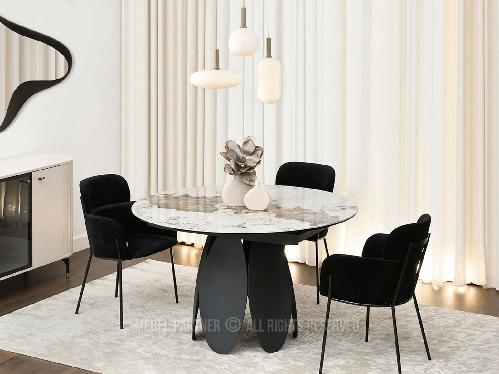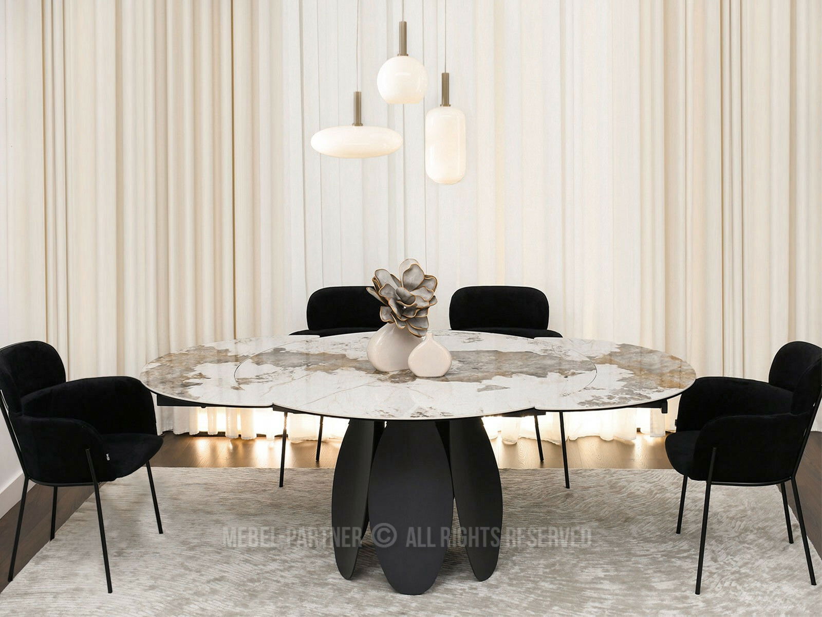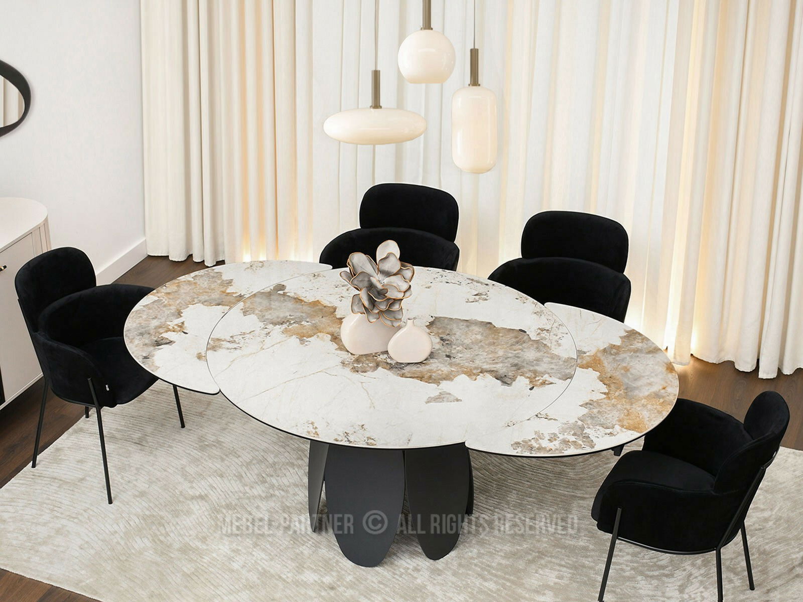 Masă sufragerie Facilidades (marmură + negru)