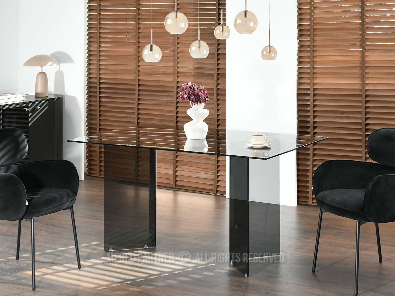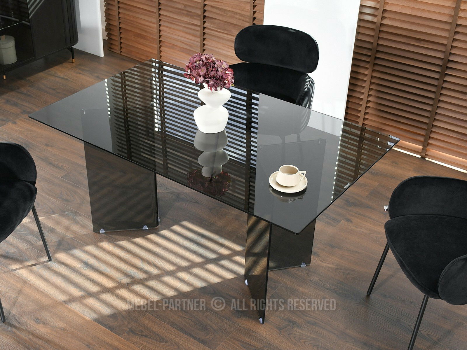 Masă sufragerie Fernandez (sticlă fumurie)